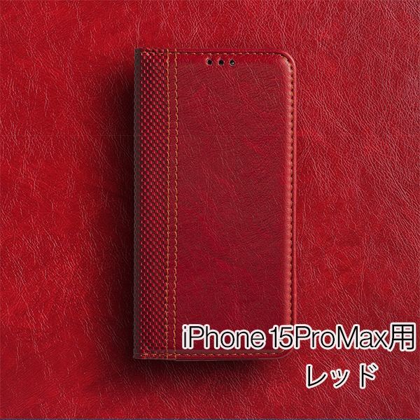 商品名 | iPhone 15ProMax 用 スマホケース 新品 手帳型 レザー 耐衝撃 カバー アイフォン カード収納 携帯ケース TPU レッド |