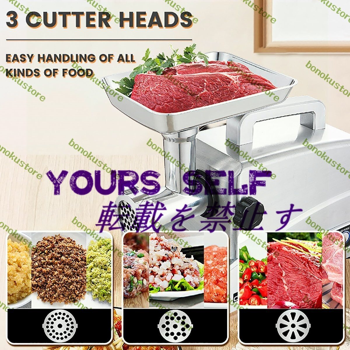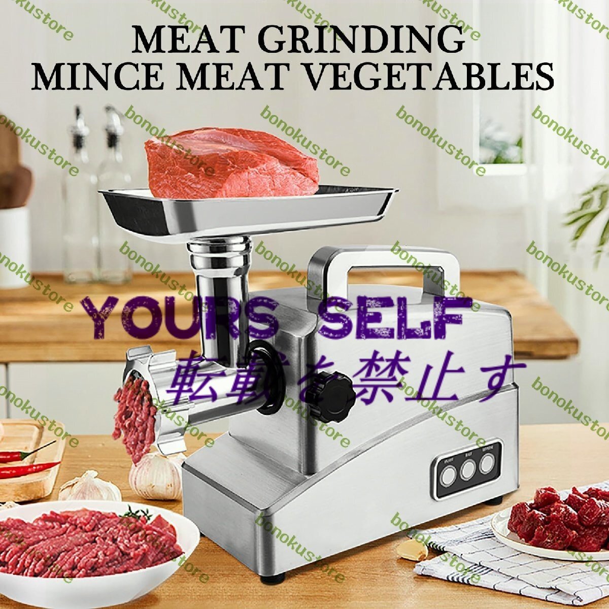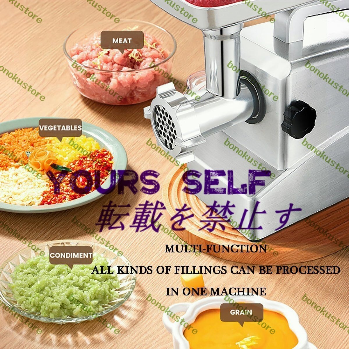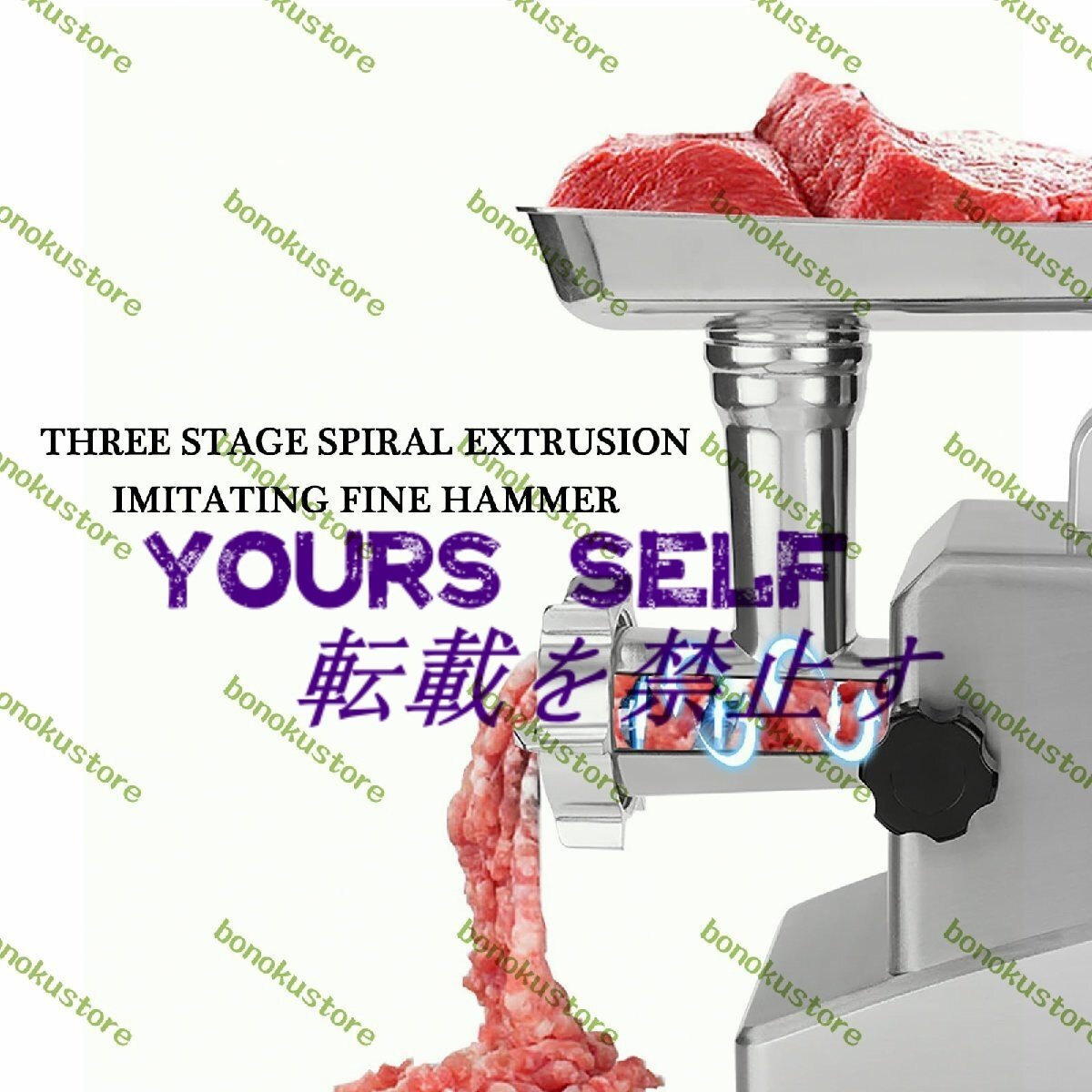 プレミアム素材:オールステンレス製。食品に触れるすべての部品には304ステンレスを採用。グラインディングヘッドはオールスチール製。 パワフルなパフォーマンス: 強力な 2000W フルクーパー モーター、内部の肉用スパイラル ロッドは、肉を低速で挽くように特別に設計され
