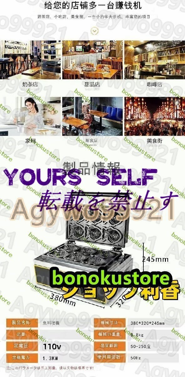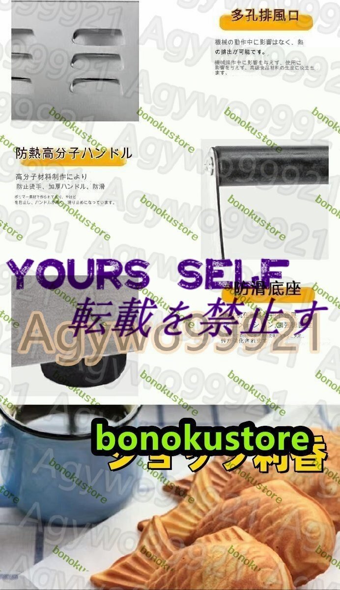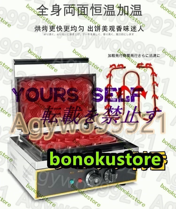 商品の説明商品の説明この業務用ホットサンド・ワッフルメーカーは、のどかな日本の風景を思わせるデザインの鯛焼き器です。金魚がモチーフで、一度に6匹の小さな金魚を焼くことができます。電動式で操作も簡単で、食材を挟んで焼くだけで、おいしい鯛焼きを楽しめます。鯛焼き器としてだけでなく、ホットサンド・ワッフルとしても利用できるので、メニューのバリエーションが広がります。これは、お店や家庭で使うのに最適な鯛焼き器です。