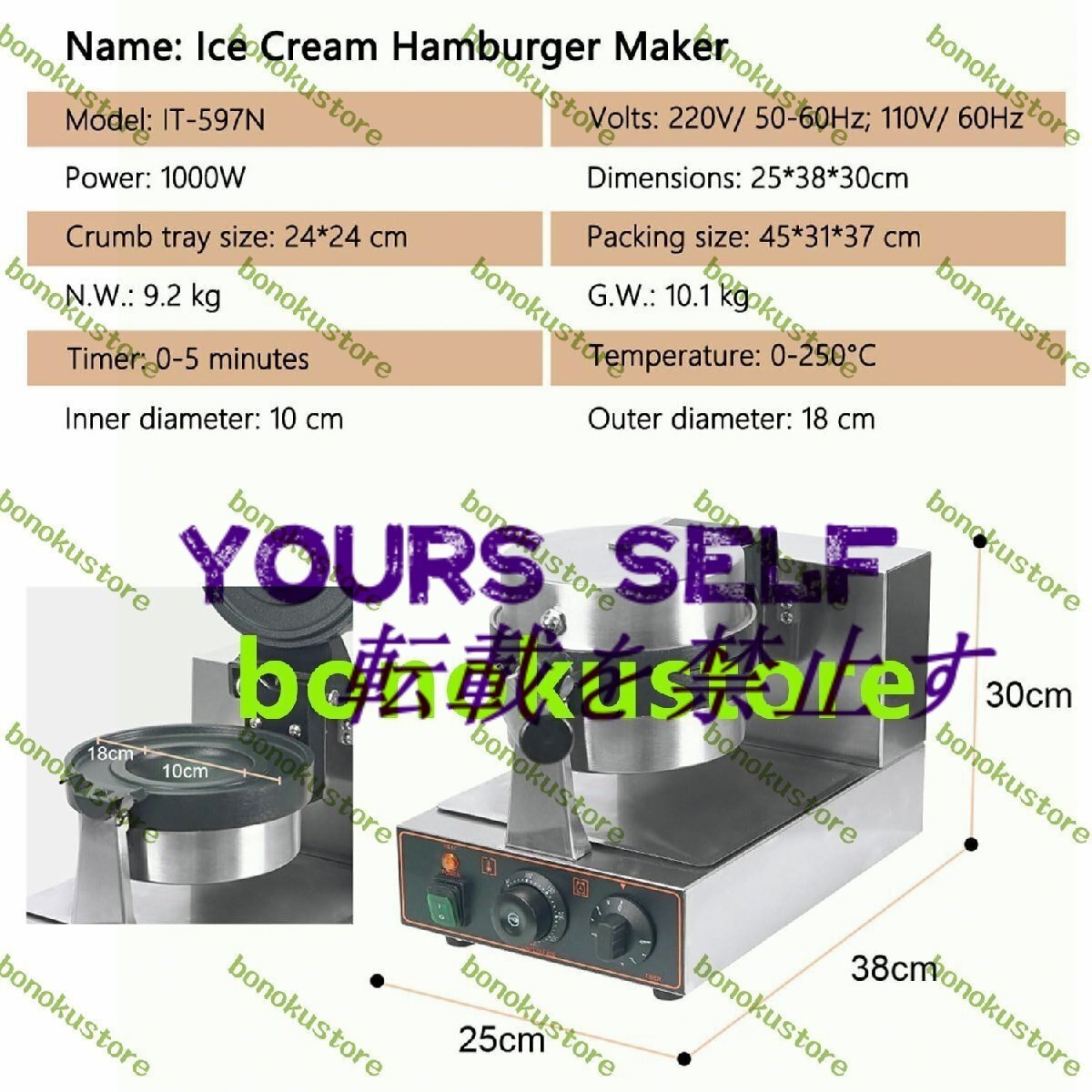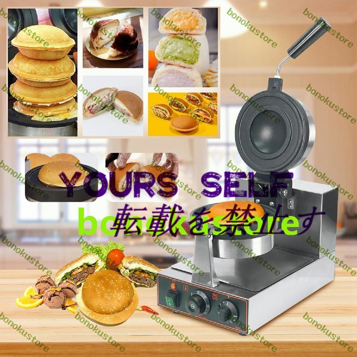 1000W ステンレススチールアイスクリームバーガーメーカー、360°回転業務用サンドイッチワッフルマシン、ノンスティックコーティング付き、50-250℃調整、スナックバー用電動ハンバーガープレス