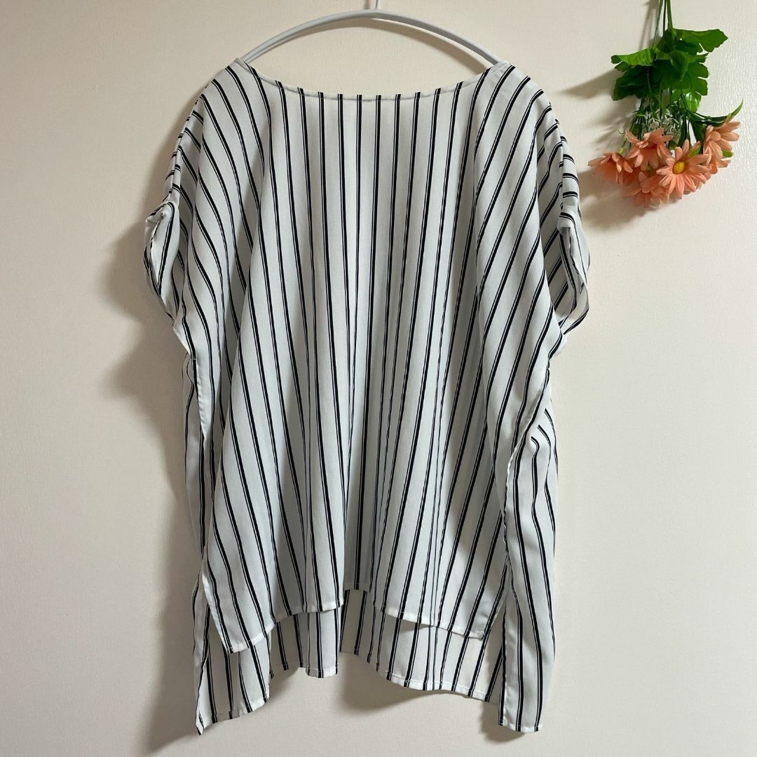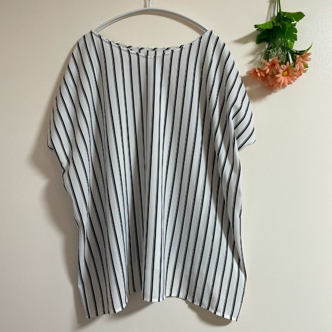 【MICHEL KLEIN】 半袖カットソー (M) 体型カバー ストライプ