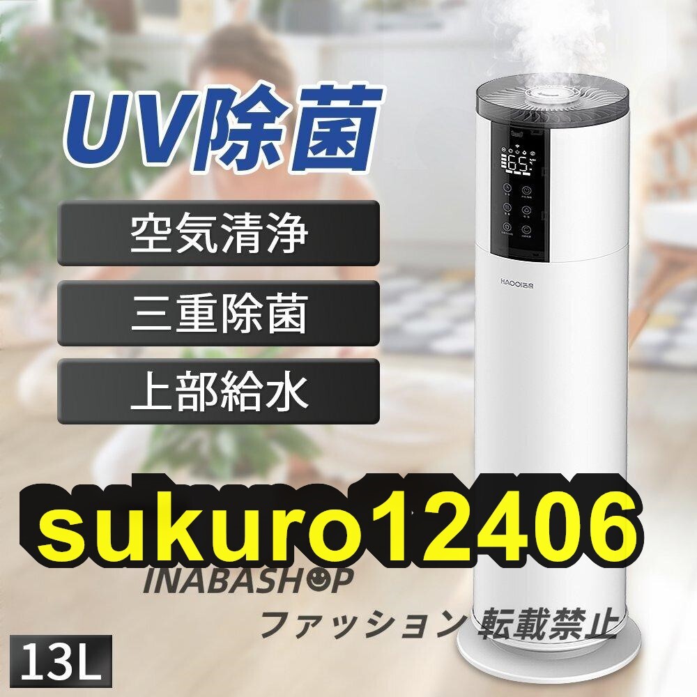 13L大容量 加湿器 リモコン付き UV除菌 25dB低騒音 超音波 上部給水 4段階調整 空焚き防止 空気清浄 360°回転 48H連続加湿