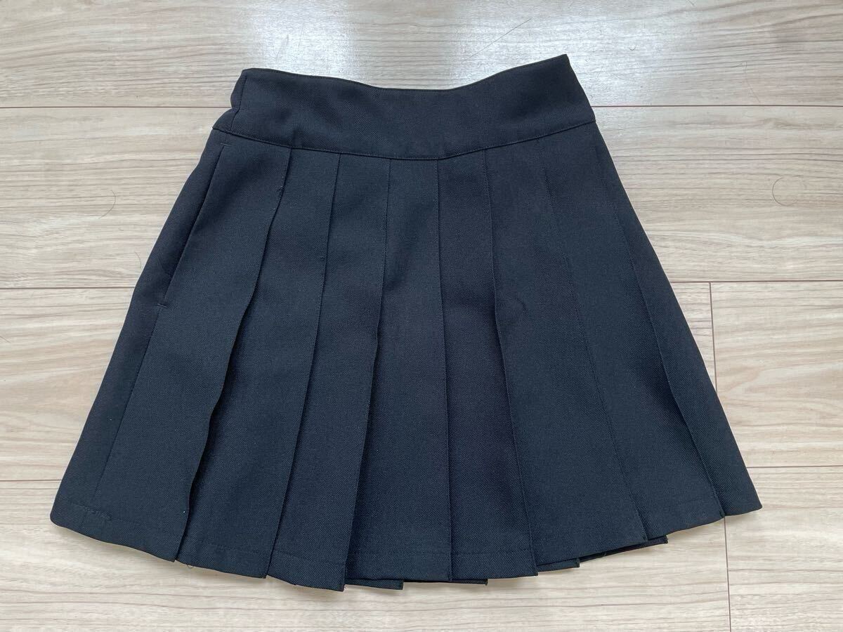 黒のポリエステル製プリーツスカート、サイズ145〜155cm