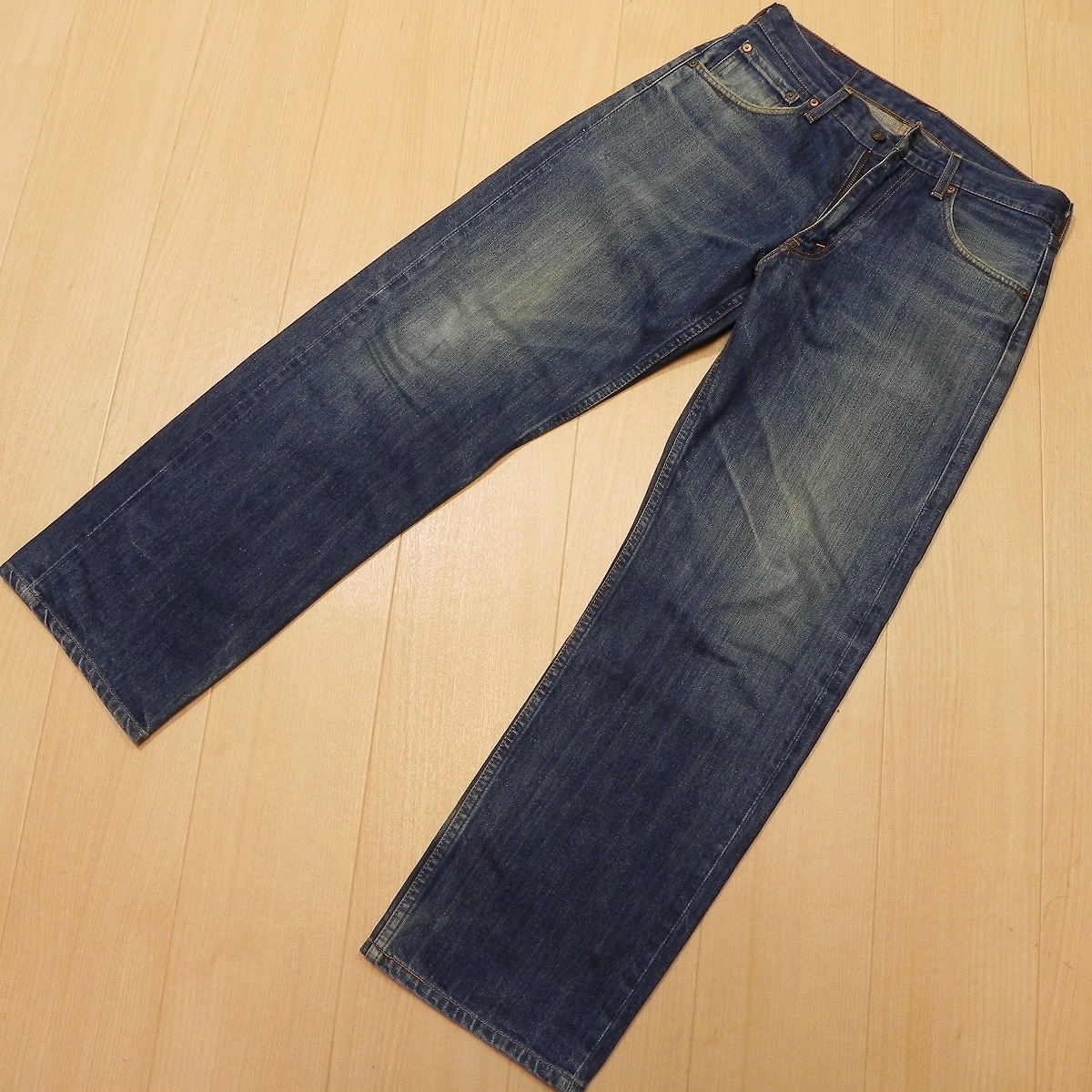 ●あくまでも古着のため、ノークレームノーリターンでお願いいたします。使用感、薄汚れがございますが、いい感じに縦落ちした色落ちが雰囲気抜群です。裾はシングルステッチで裾上げされており、多少の擦れがございます。