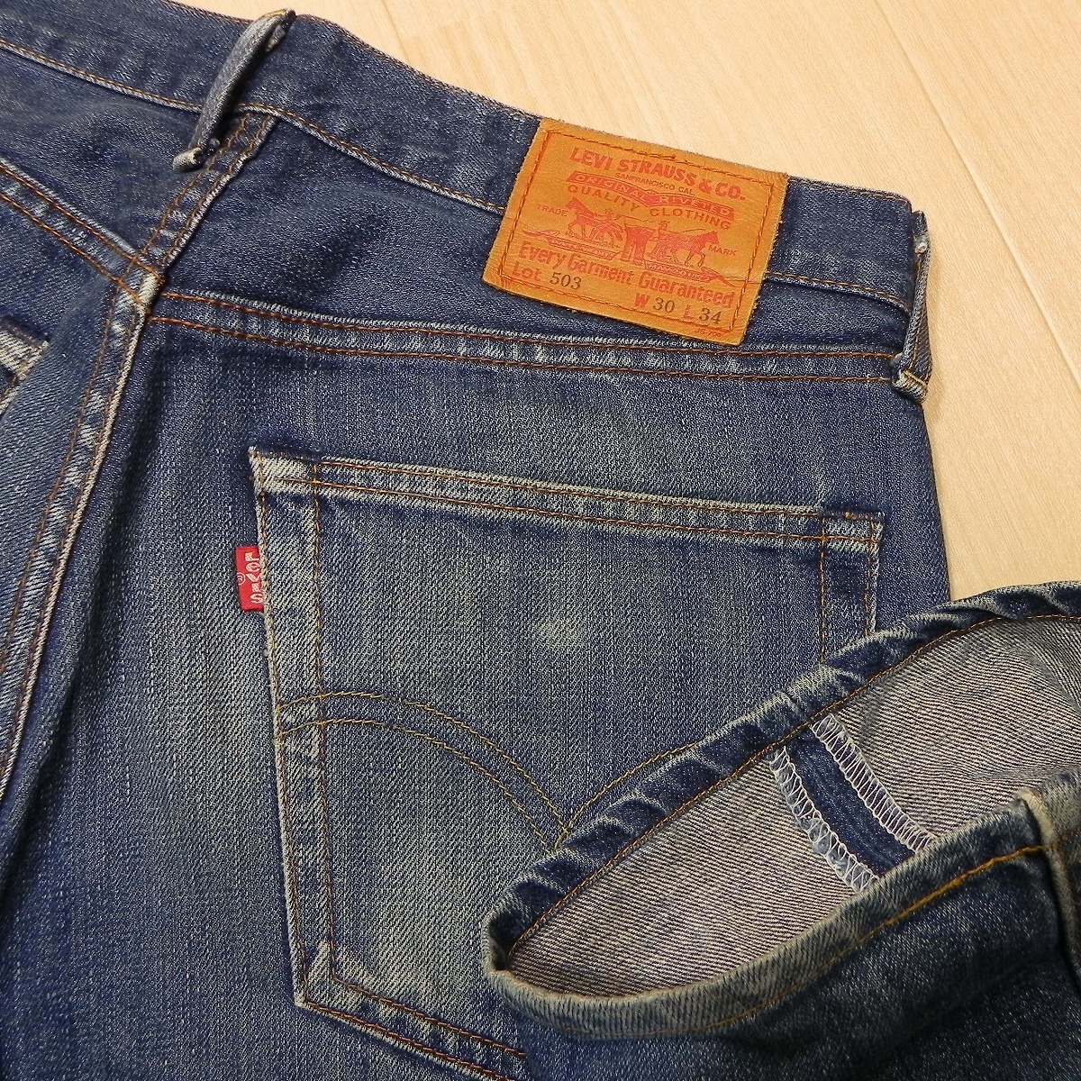 (621★ 00s 日本製 Levis リーバイス 503 革パッチ デニムパンツ ジーンズ w30 古着 色落ち 縦落ち 雰囲気抜群 即決 ★