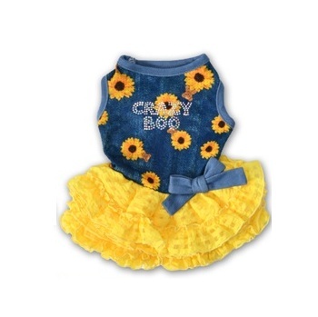 CRAZYBOO ボリュームたっぷりフリルスカートのひまわりワンピース