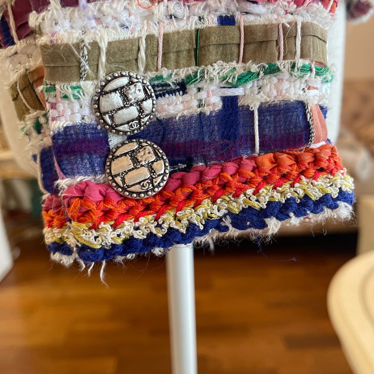 ツィードという生地なので、所々に糸の飛び出している部分がございます(お写真4枚目をご参照ください)切ったり引っ張ったりと修正は出来るかと思いますが、なにぶんにも素人ですので、いじらずにそのまま出品致します。
