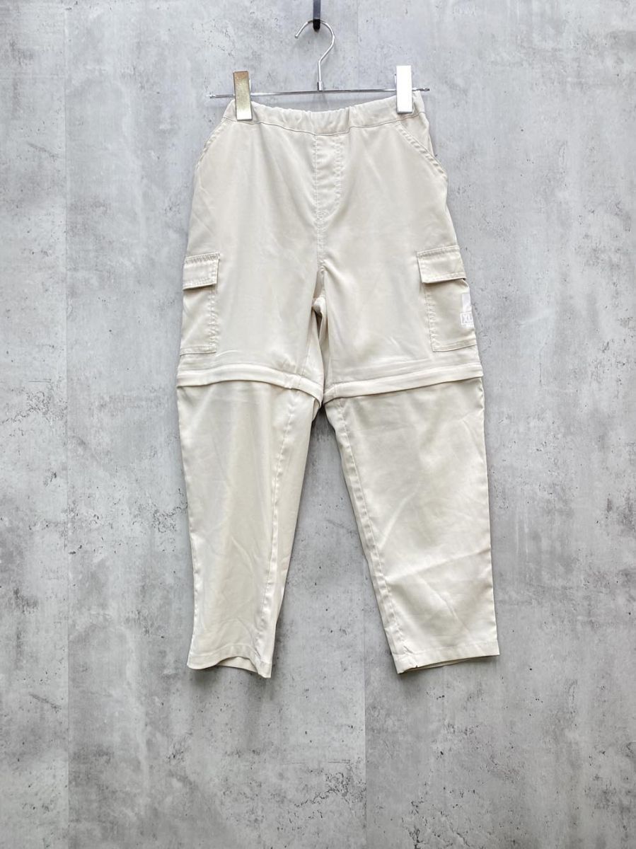 商品の状態 | ウエスト:ゴム 品質タグにペン跡がございますが、着用に問題ありません。 膝位置のZIPでロング丈とショート丈の切り替えが可能です。 商品に目立つヨゴレなど無く、USEDとして良い状態です。 (当方管理番号:syfd154012-m) | ||||||||||