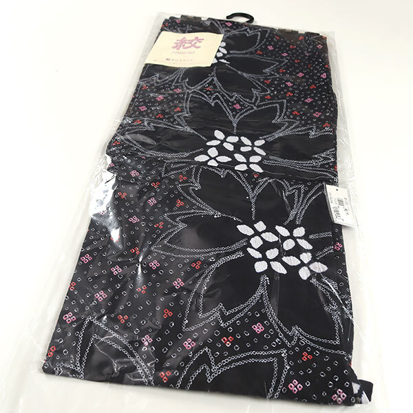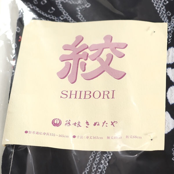 和遊館 即決sa3321 名門 藤娘きぬたや レディース プレタ 仕立上がり絞り 綿 浴衣 155~165cm 黒紺 花模様