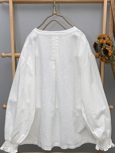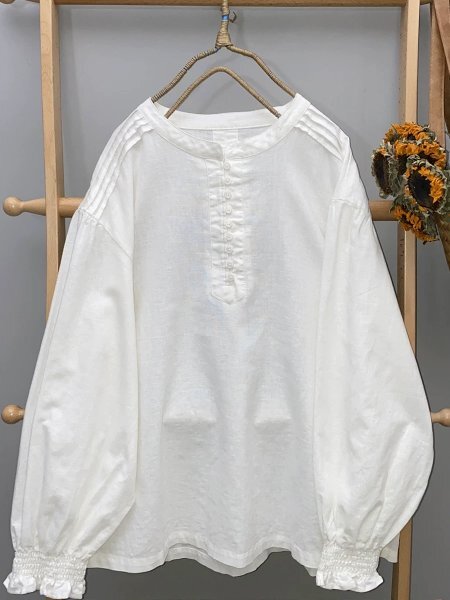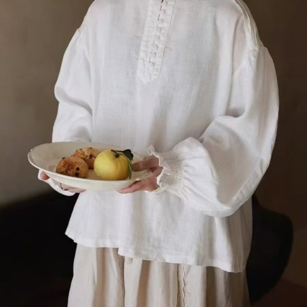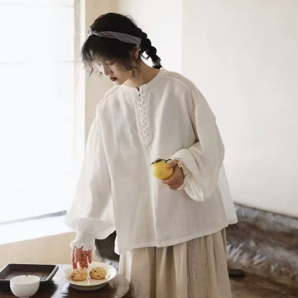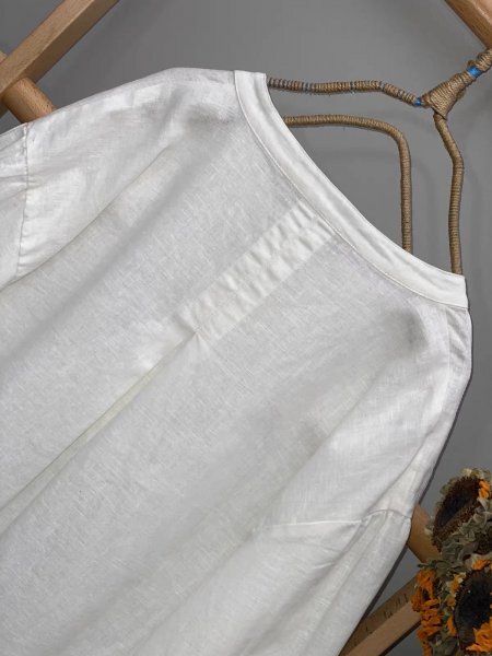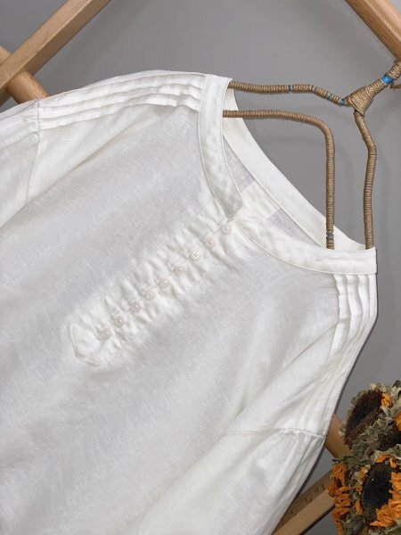 yh mz 0704 トップス チュニック 大人可愛 ヒダ フリーサイズ ナチュラル 綿麻混 ホワイト