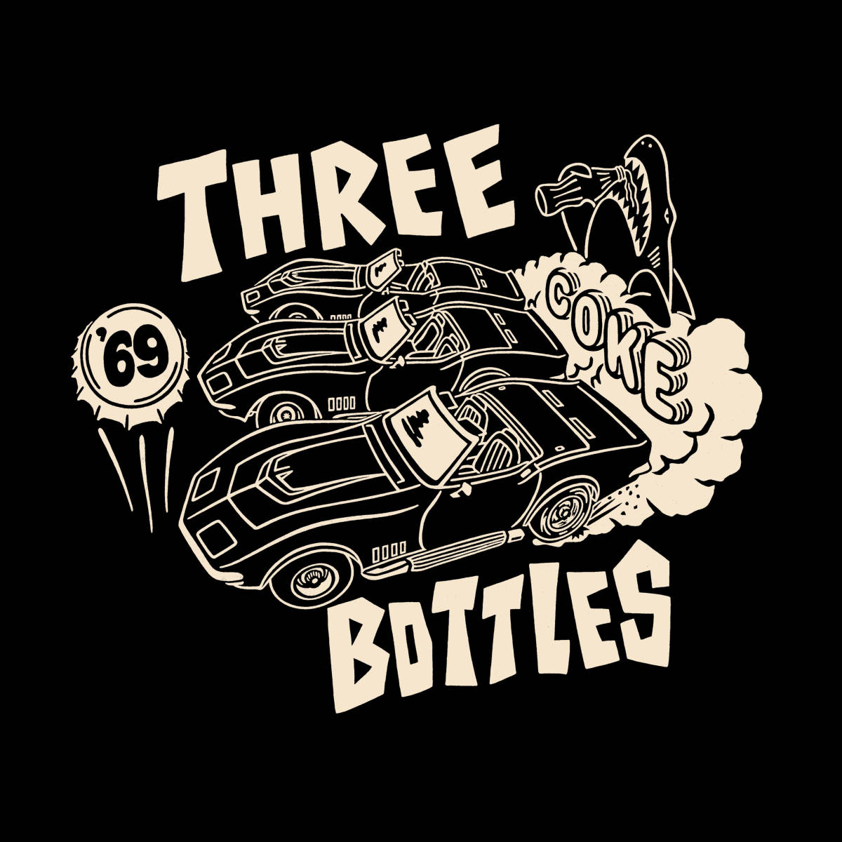 ■3 COKE BOTTLES Tシャツ■Sサイズ(ブラックxナチュラル)アメ車 アメリカ シボレー コルベット CHEVROLET CORVETTE C3
