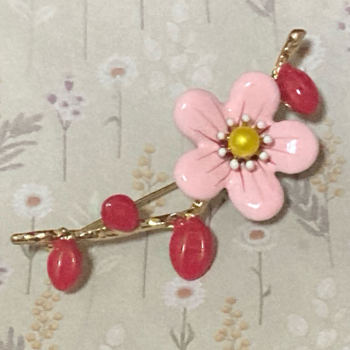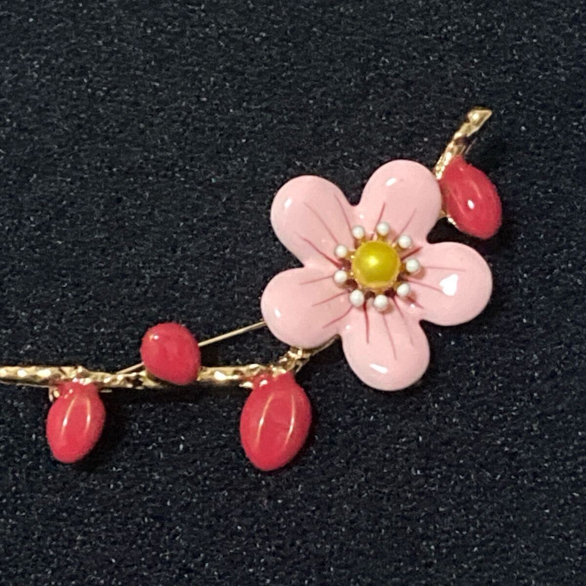 新品送料無料 梅のブローチ 花 かわいい 梅の木の枝 綺麗 植物 春 花見 帯留め スカーフピン 大きめ ゴールド