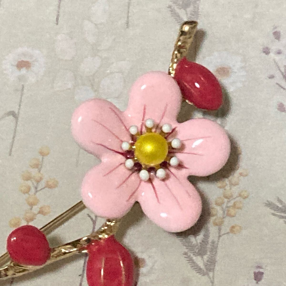 かわいらしい色合いの梅の木の枝で春らしいデザインになります。