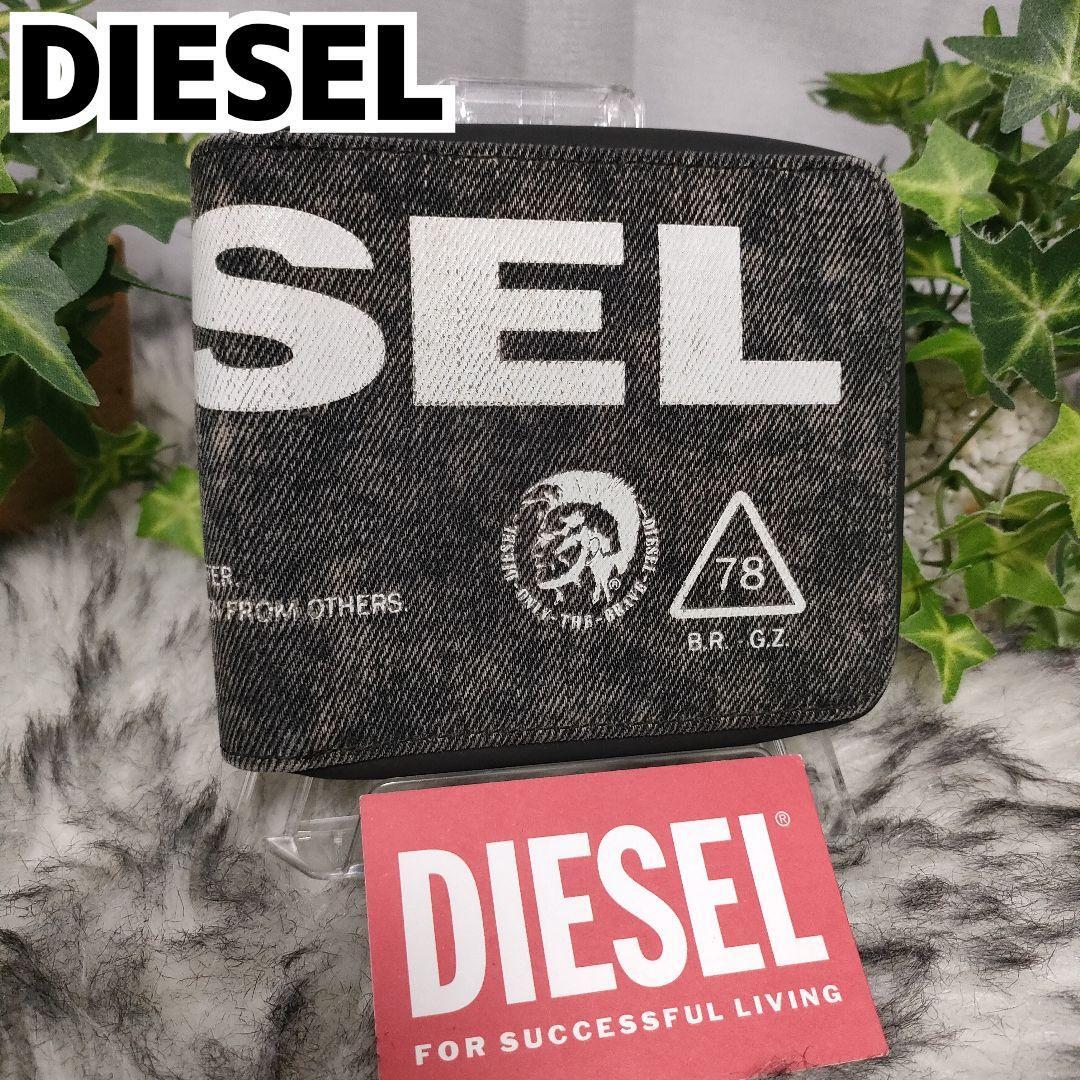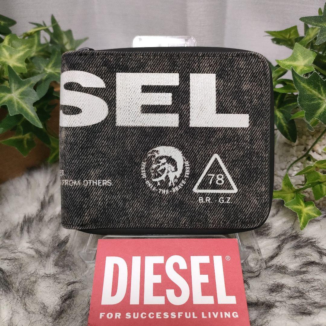DIESEL 折り財布 デニム ラウンド ビッグロゴ ブレイブマン ディーゼル 財布 ジーンズ ケミカル ビンテージ 男性 2つ折り財布 コイン女性