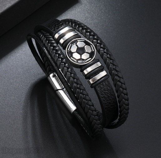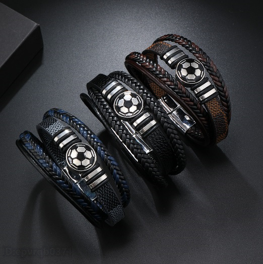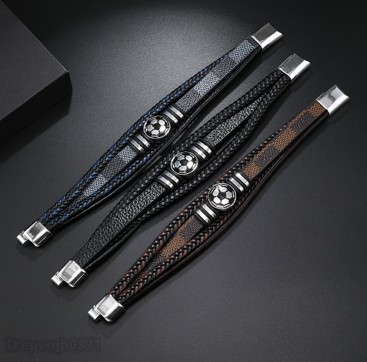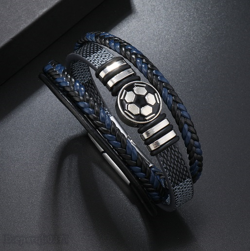 レザーバングル 新入荷 メンズ ブレスレット サッカー チタンステンレス 紳士 アクセサリー 総長21センチ 3色選ぶ/青