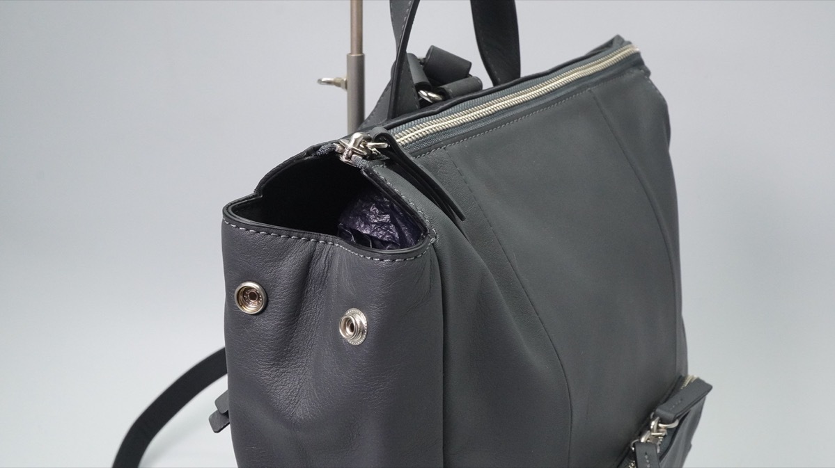 フロント/前面 シングルポケット×1、サイド/横面 縦ファスナーポケット×1、バック/後面 ダブルポケット×2
