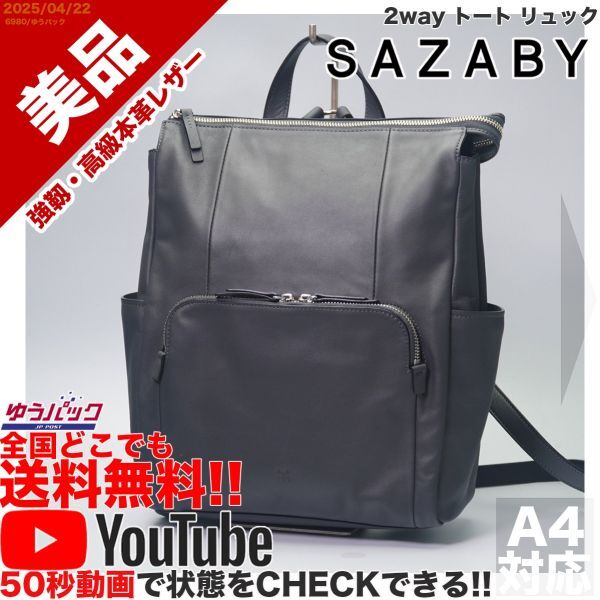 送料無料 即決 YouTube動画アリ 定価30000円 美品 サザビー SAZABY 2way トート リュック レザー バッグ
