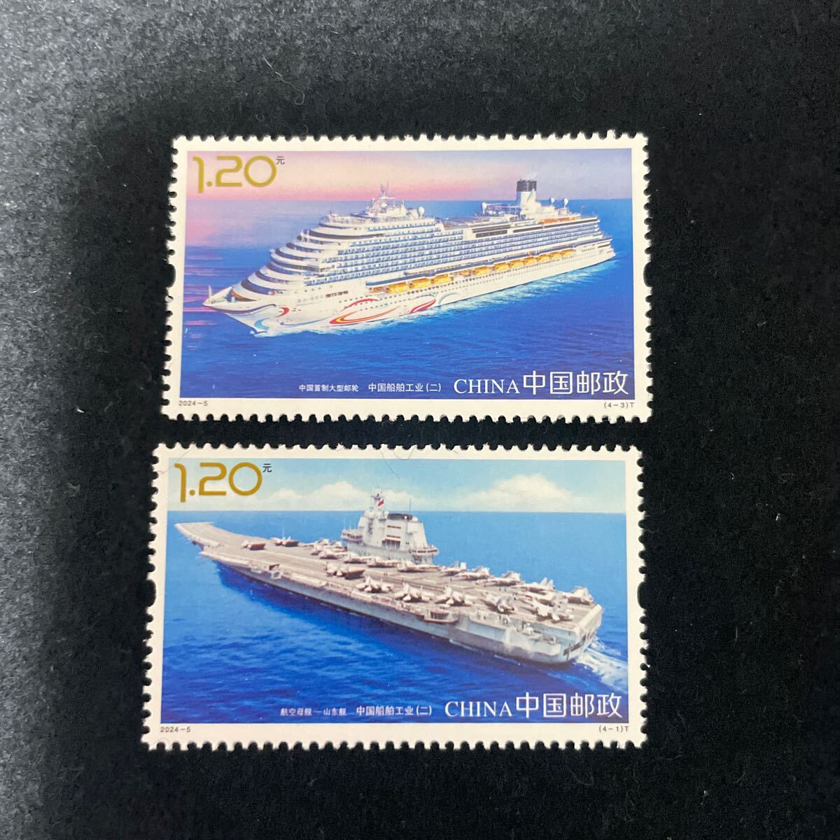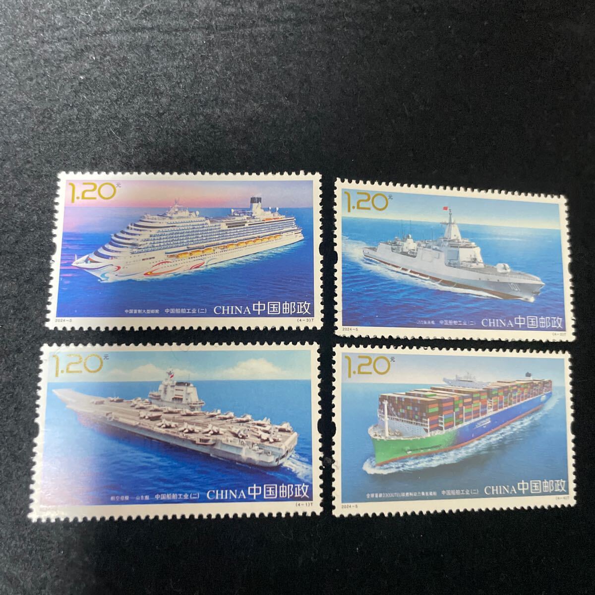 中国船舶工業-航空母艦。四枚は、山東艦、055驅逐艦、中国初めてつくった大型郵船、23000TEU両燃料動力貨物船。年月の経過による多少のシミなどありますので、神経質な方は入札をご遠慮ください。