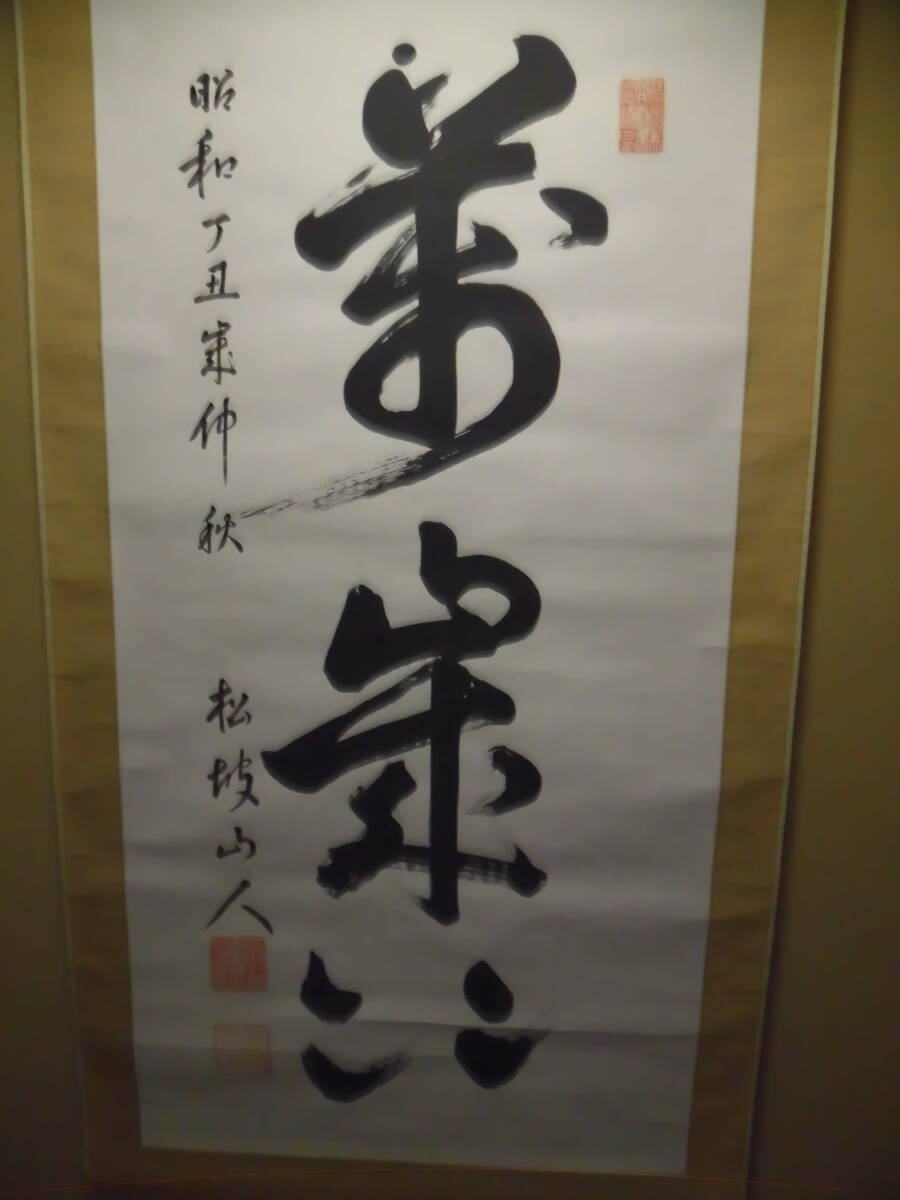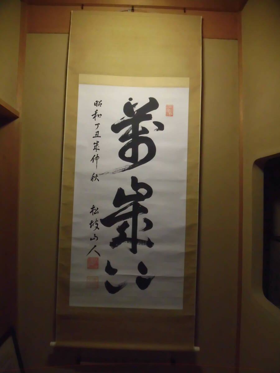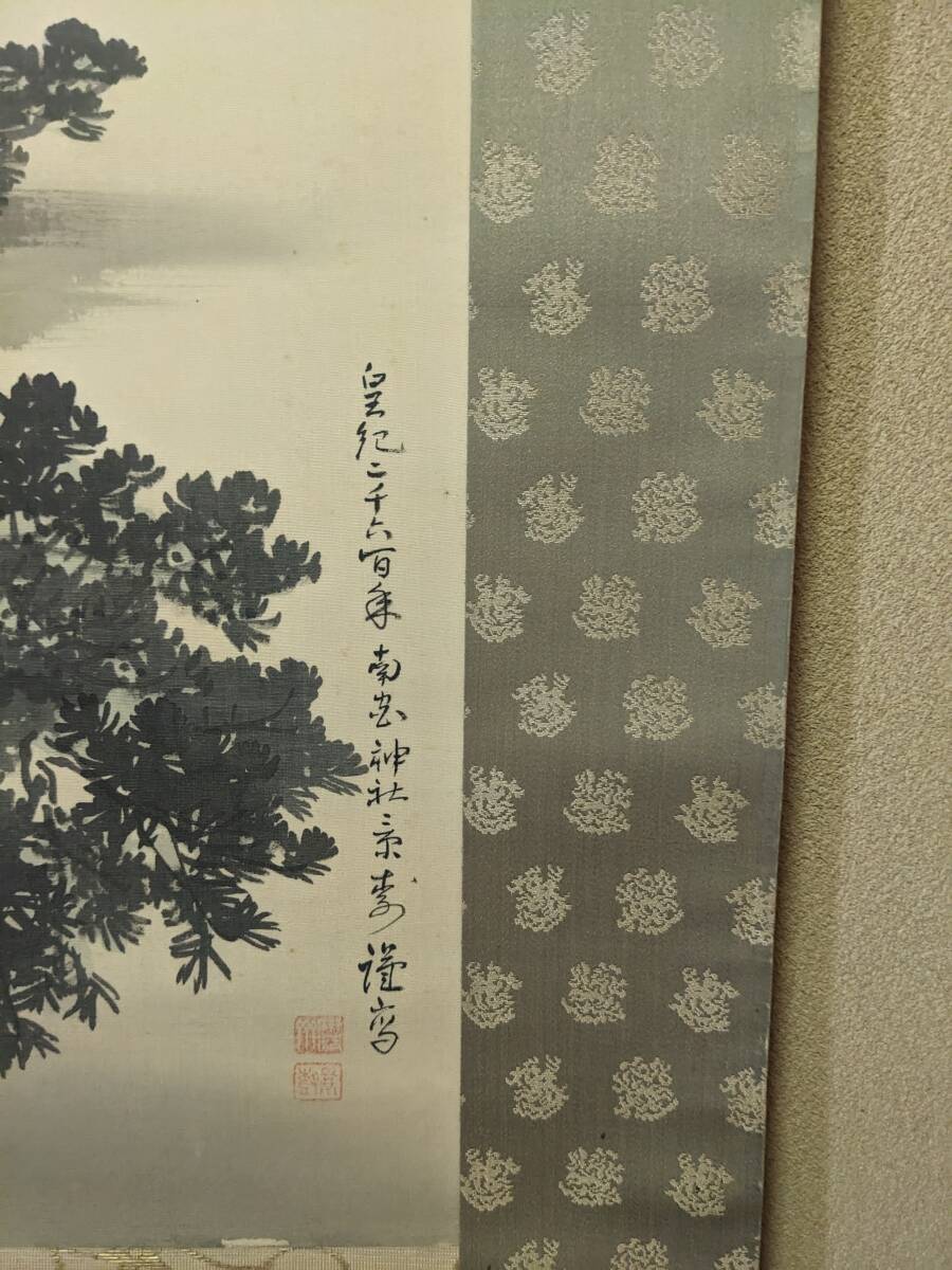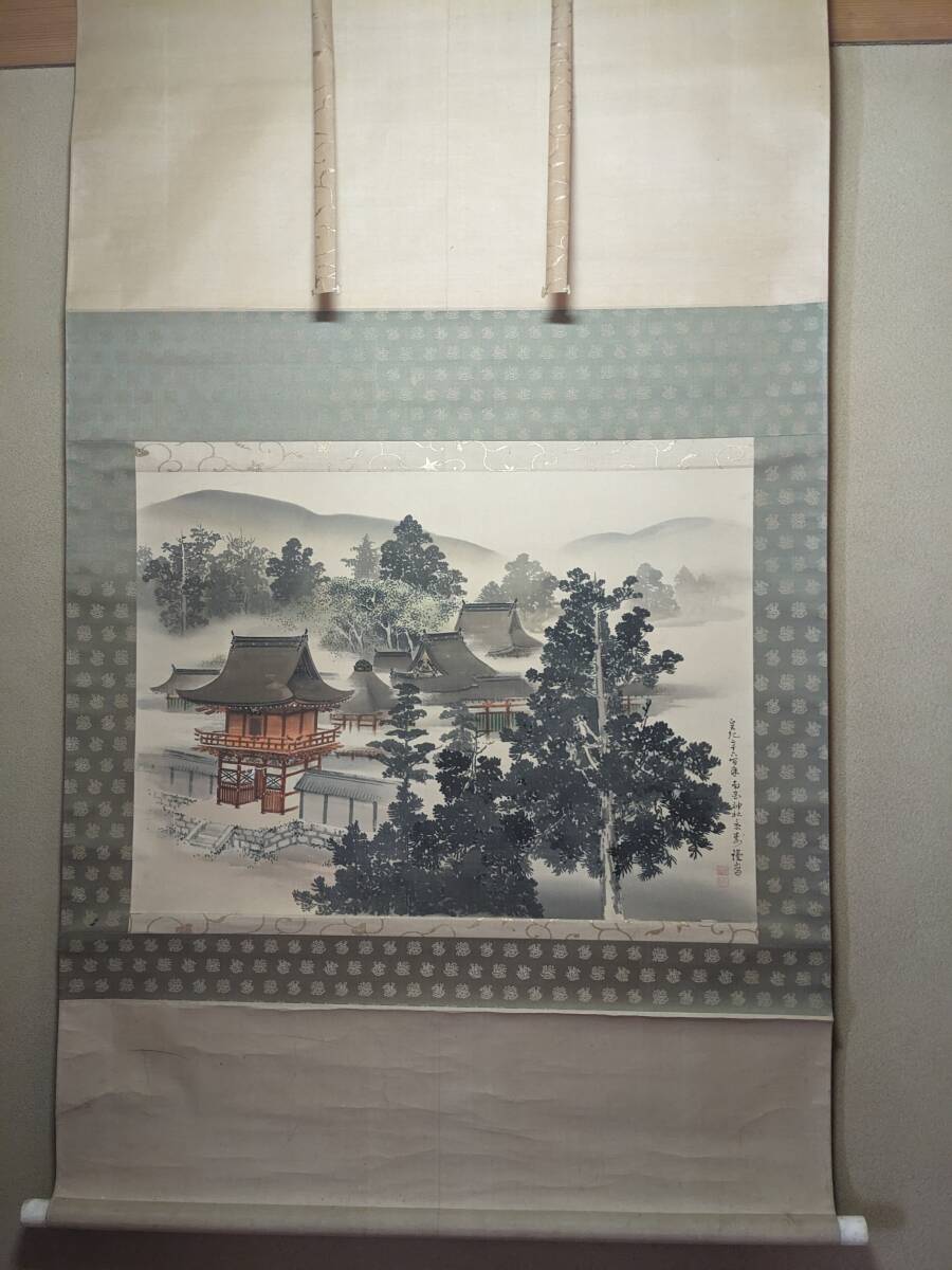 南宮大社の掛軸と萬歳々々の書の掛軸です。景寿とある南宮神社の掛軸の軸先まで含めたの横の長さは約96㎝で共箱(箱に少しイタミ有)、画像では軸をまく紐がとれていますが、つけておきました。画像のように表具に書いた線があります。書の掛軸もシワ等の経年のイタミがあります。送付は、ゆうパックを予定しています。他にも岐阜県の高木美石の掛軸を出品しております。同時送付も可能です。入札よろしくお願いします。