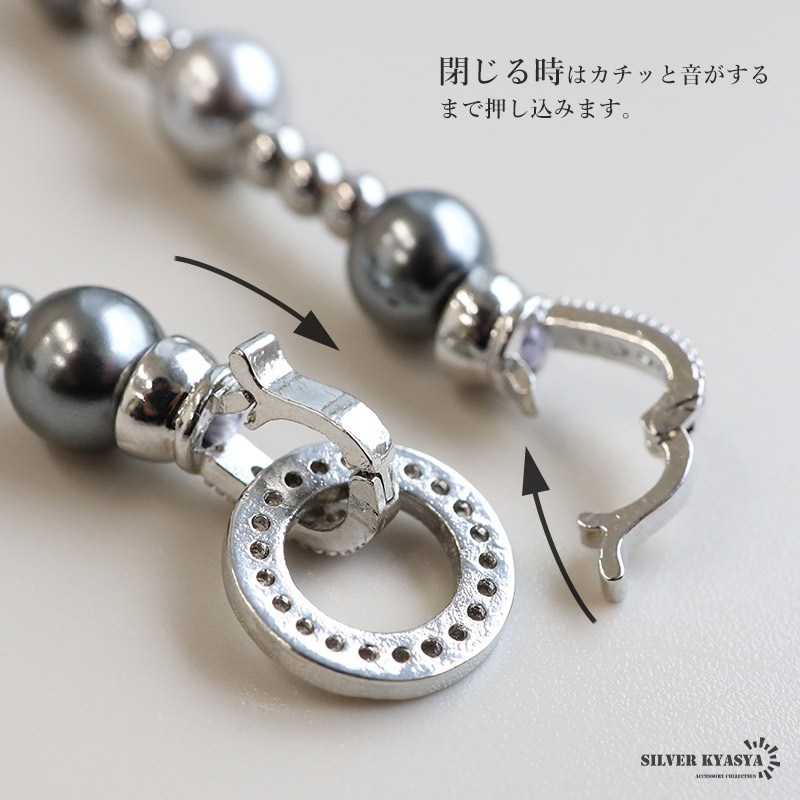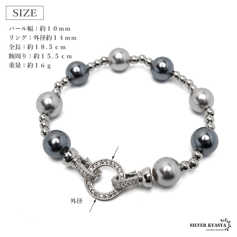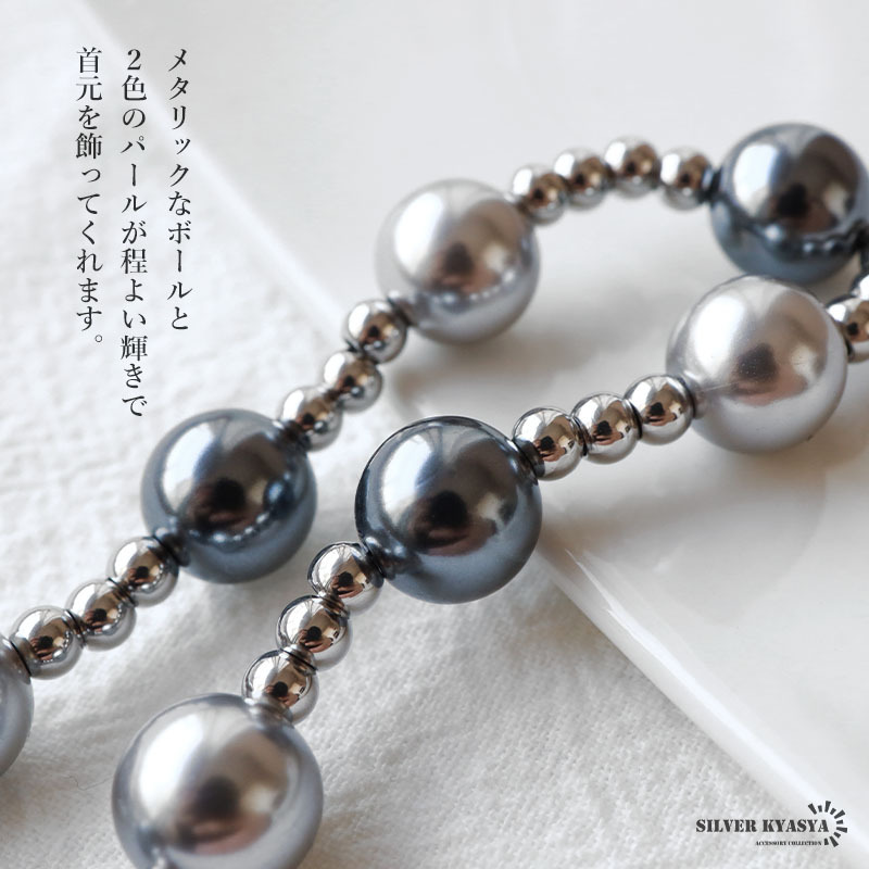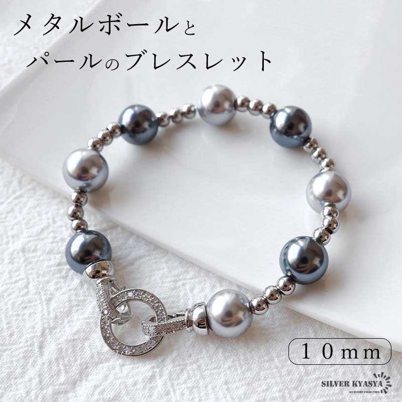 ステンレス パールブレスレット メタルブレスレット シルバー グレー 大人可愛い 真珠 フォーマル レディース 金アレ対応