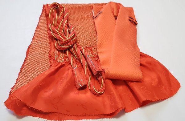 和553 帯締め 帯揚げ 伊達襟 3点セット 総絞り オレンジ系 お振袖に
