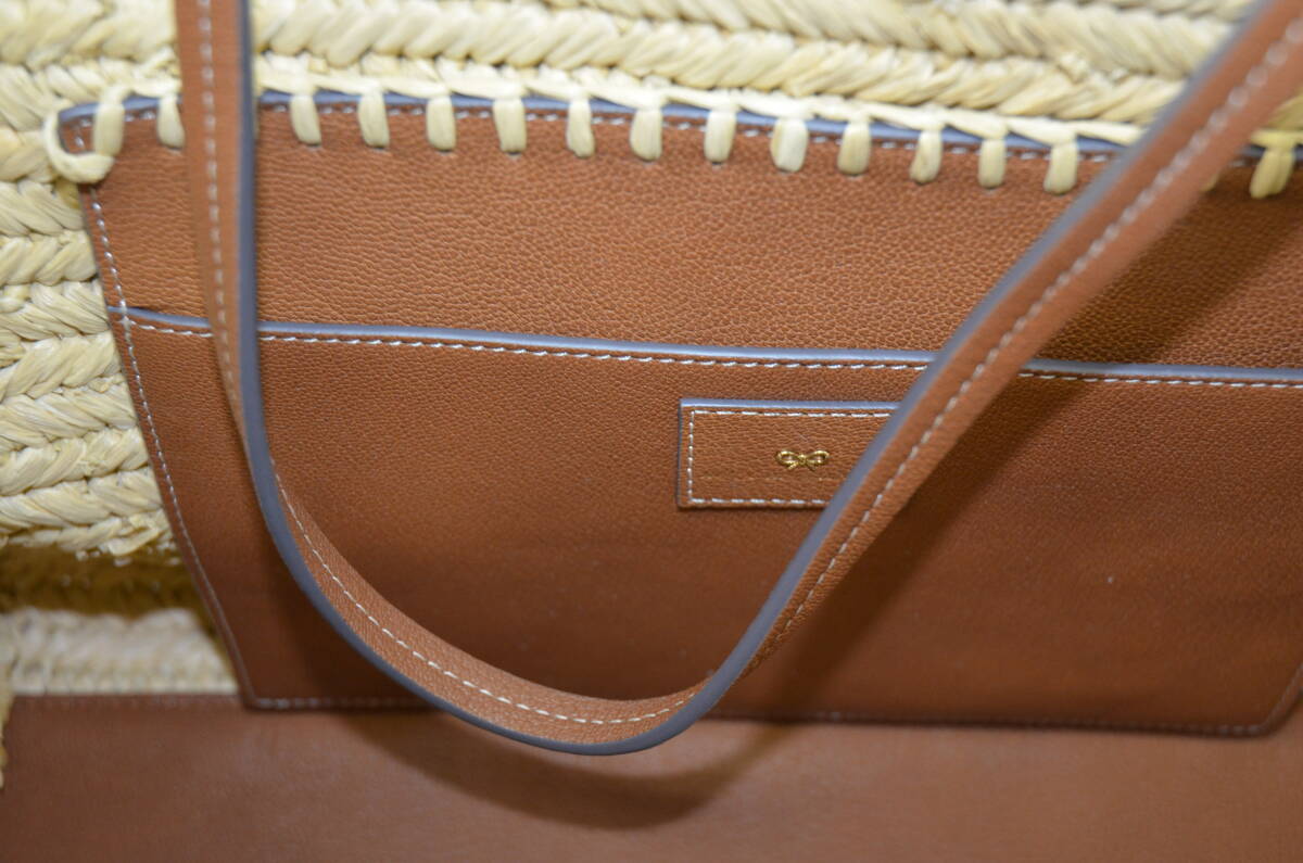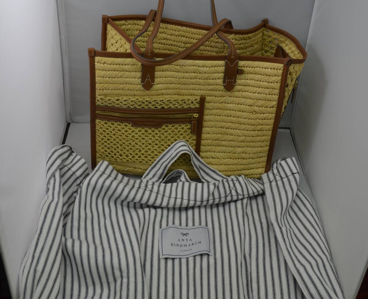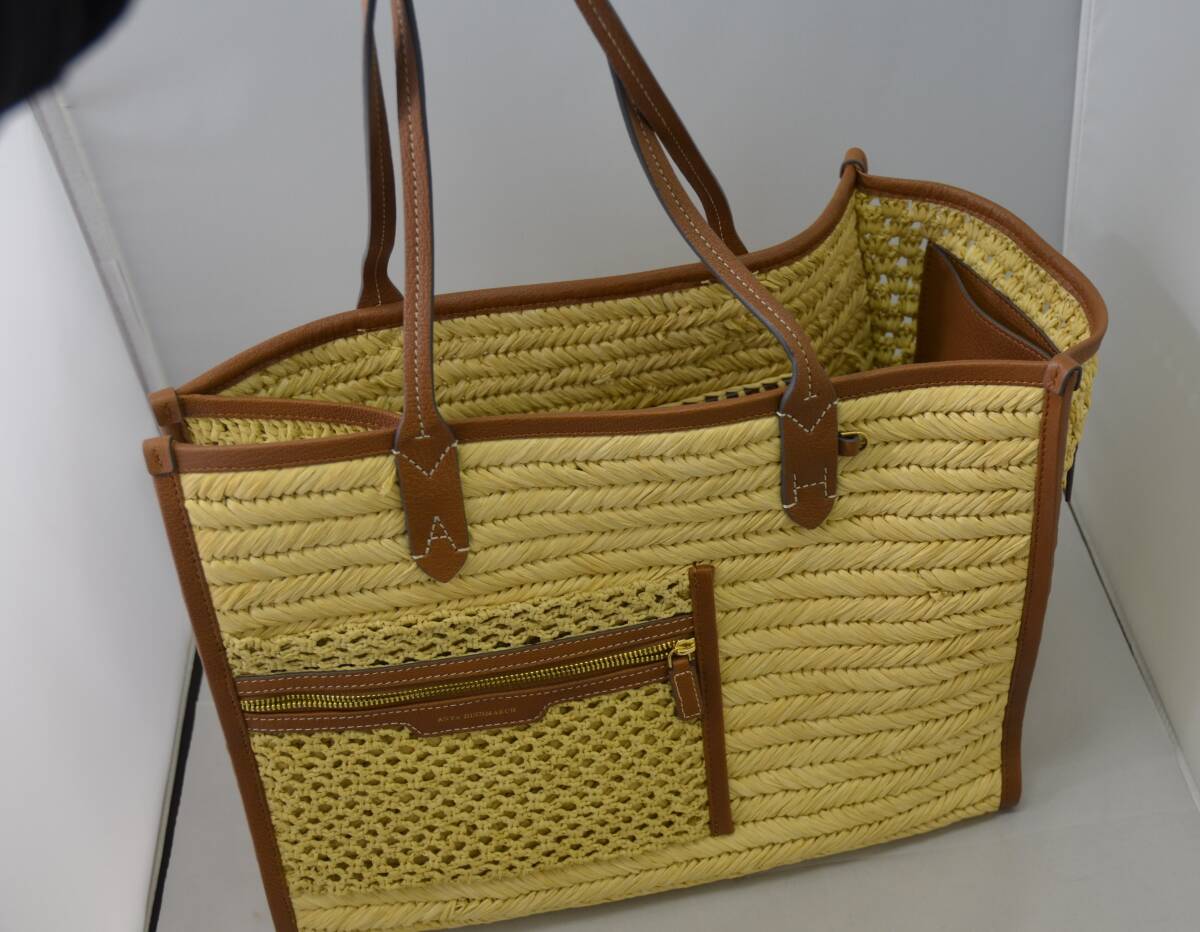 【大黒屋】★未使用品★ Anya Hindmarch アニヤハインドマーチ ラフィアポケットトート かごバック 定価16万~