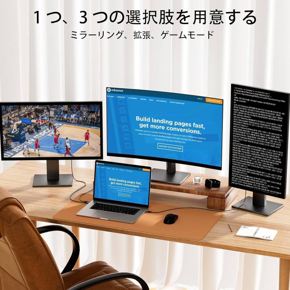 【幅広い機種対応】 対応機器:iPhone 15 Pro Max Plus(USB-C 2023), iPhone 16 Pro Max Plus, iMac、iPad Pro 2020/2018、MacBook Pro 2022/2021/2020、MacBook Air 2022/2021/2020、Steam Deck、Samsung Galaxy Galaxy S22/S22+/S21 Ultra/S21/Note 20/Note 10+、Dell XPS 17/15/13、および DP Alt モードをサポートするUSB C デバイス。(ご注意:Xiaomi Mi A3、Redmi 11s、BlackView Tab 12、Samsung および LG TV では動作しません。)(ご注意:Sony Xperia、Xiaomi、Sharp Aquosについて、ほとんど非対応機種となりますので、ぜひお先にお問い合わせください。)