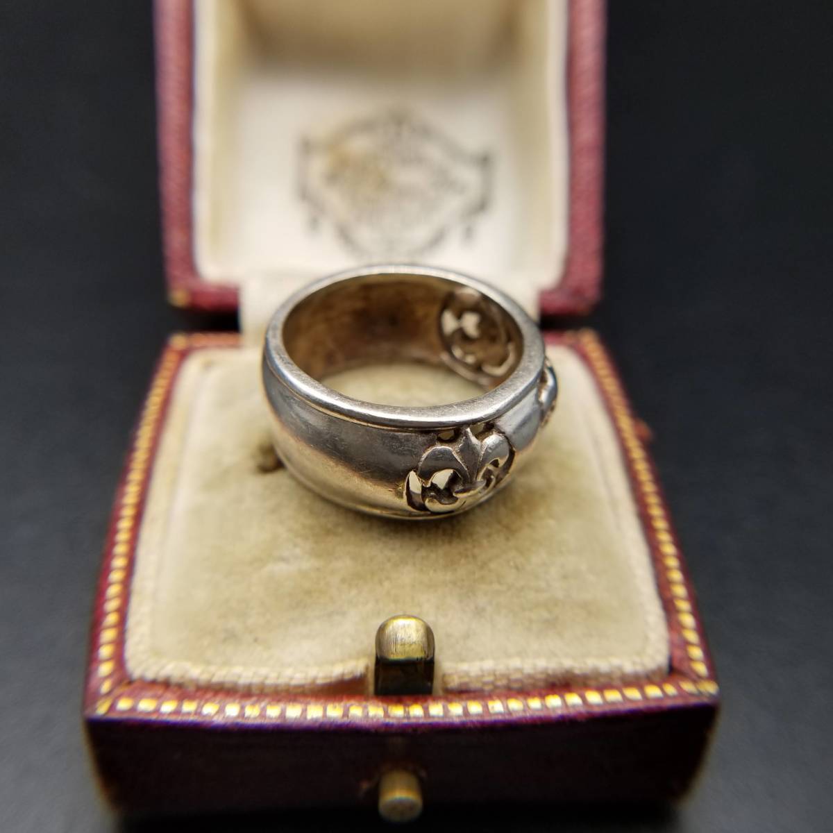 フルールドリス 透かし 925 シルバー ヴィンテージ バンド リング 指輪 幅広 銀 オープンワーク ボリューム 存在感 ロック バイカー A879