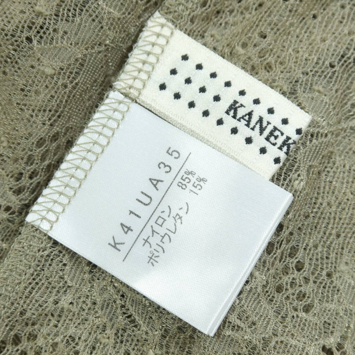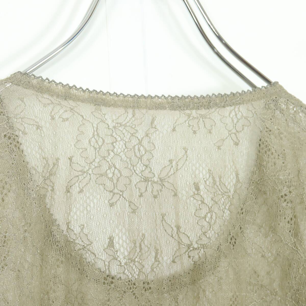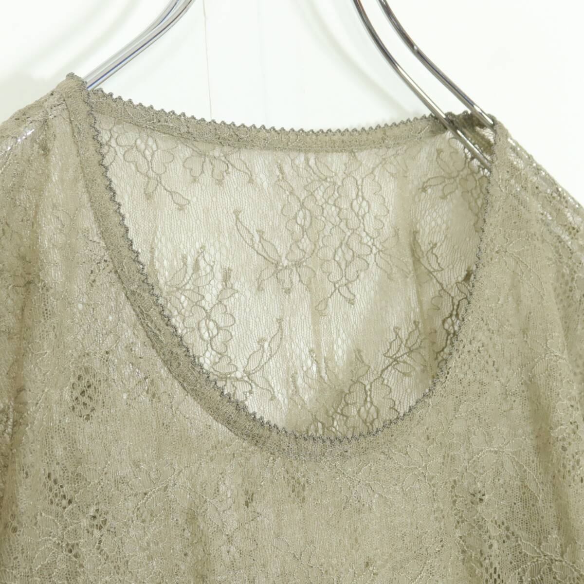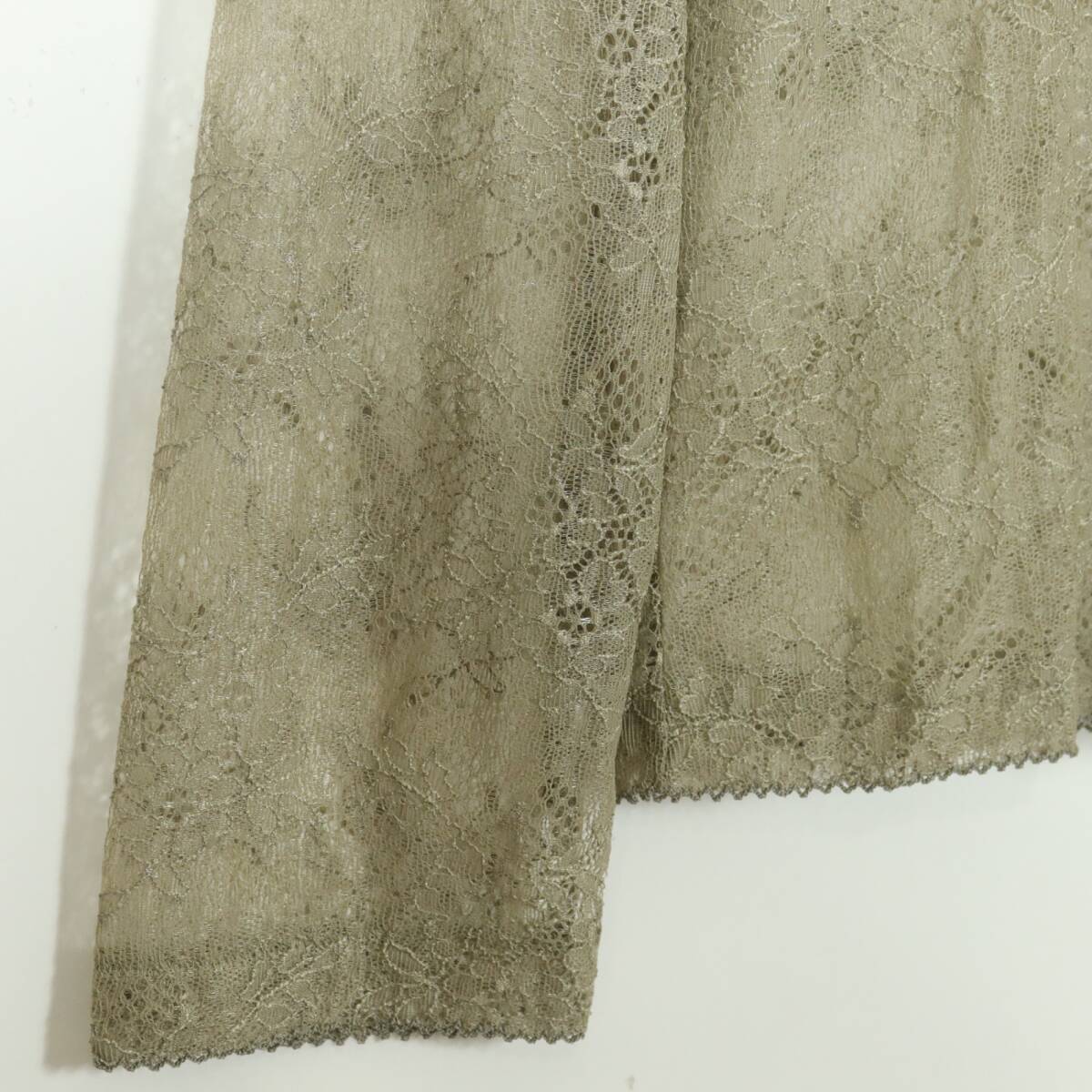 | 商品説明 | 【実寸約】肩幅39袖丈56バスト90着丈55.5(cm) 【サイズ表記】 なし。実寸をご参照くださいませ。 【素材】 ナイロン85ポリウレタン15% 【状態】使用感少なめの美品 【デザイン】カーキ系 総レースの長袖カットソーです。 薄手/お花のレース ピコレースの縁取り付き♪ |