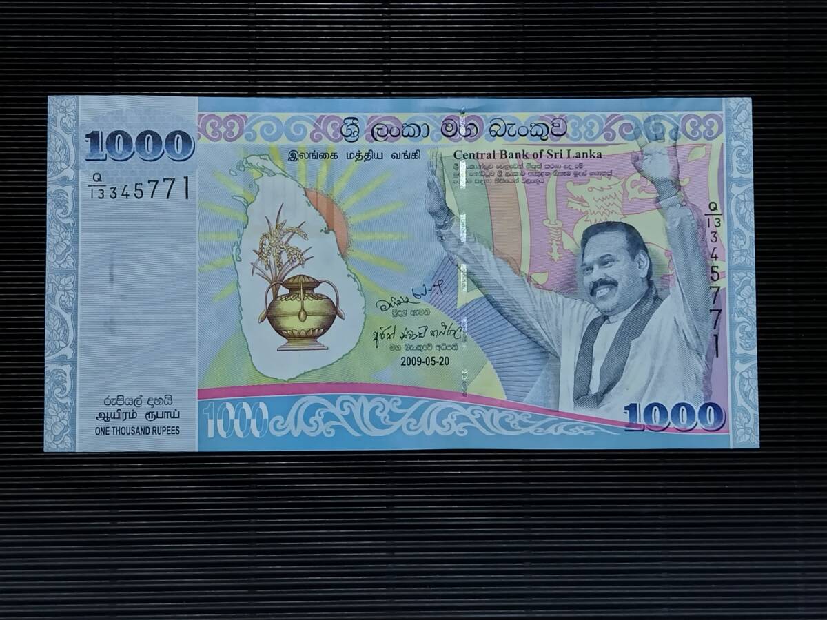 スリランカ 1000 Rupees札 記念発行紙幣 コレクション向けピン札 2009年5月20日 未使用~甘い未使用 内戦終結 p-122a #Q/13 345771