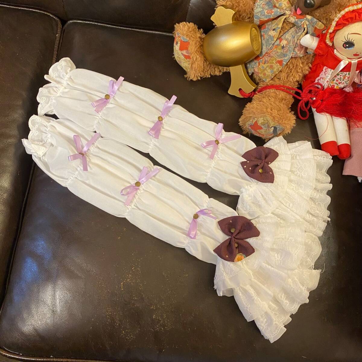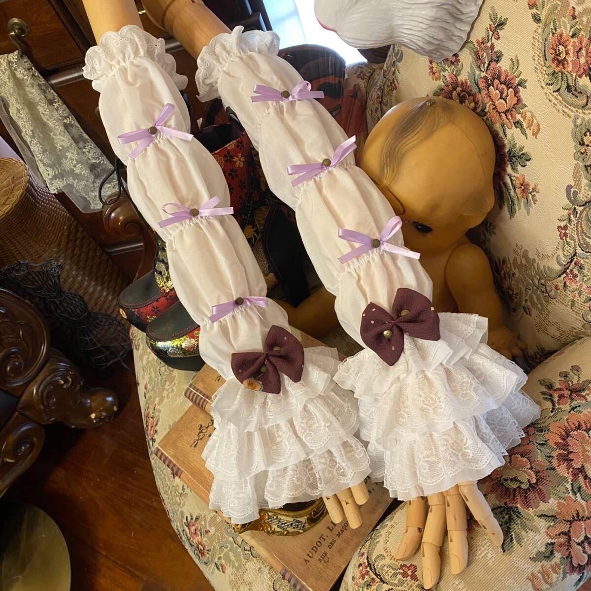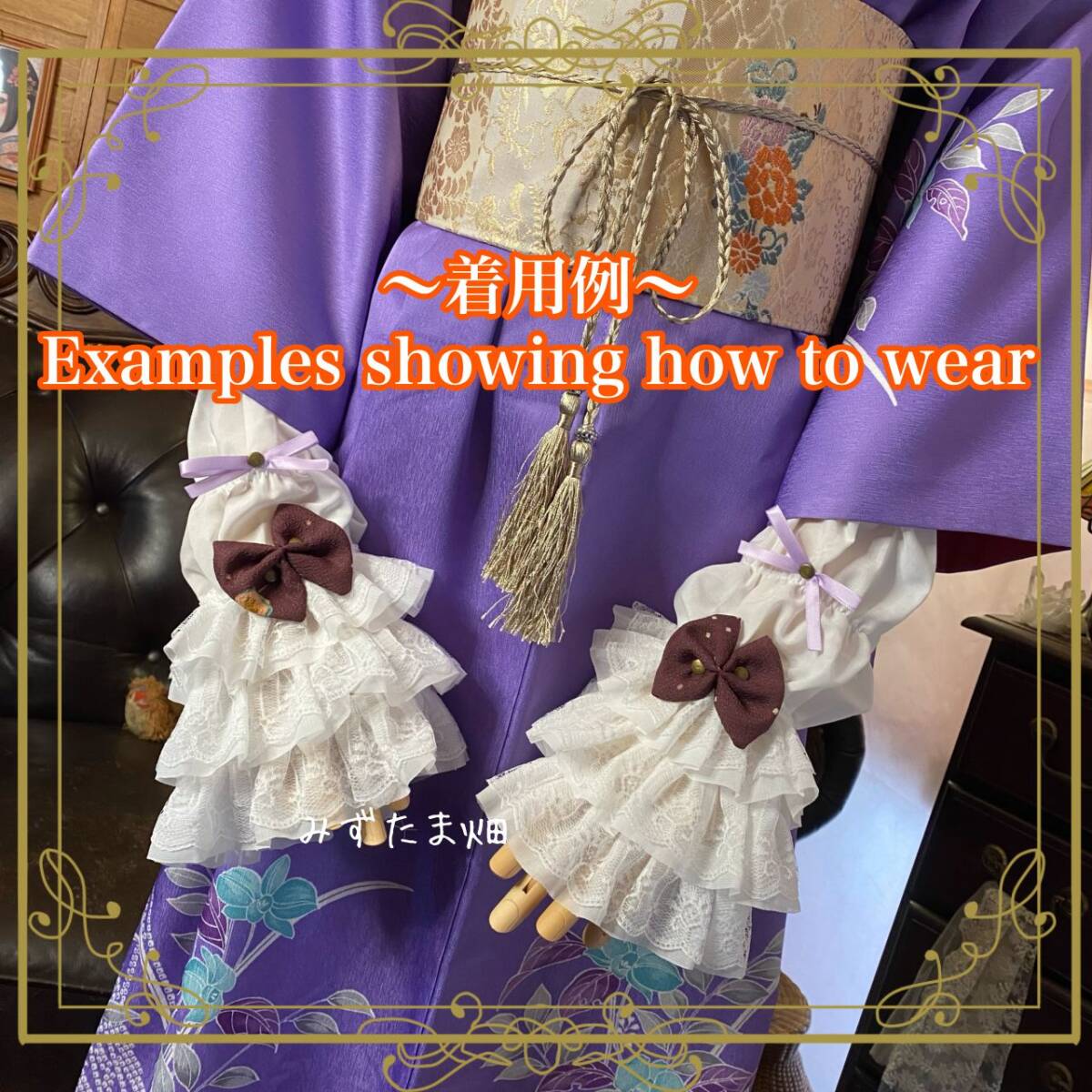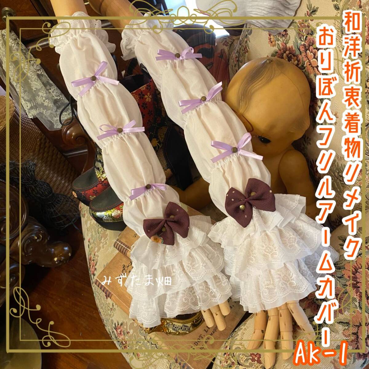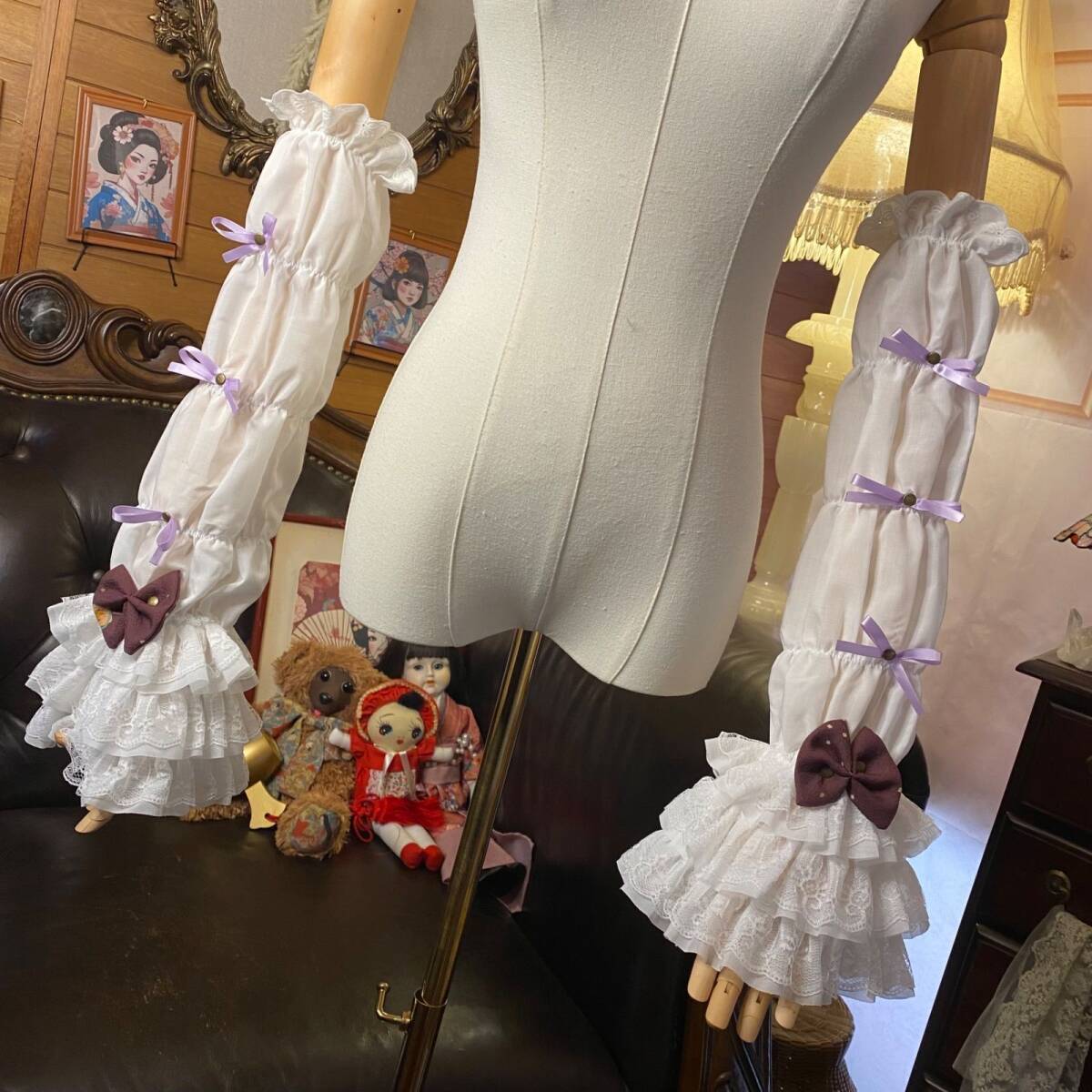 【着物リメイク おりぼん アームカバー 和洋折衷 レトロ ロリータ 古着 ハンドメイド パープルのお砂糖リボンとレースの約束 AK-1】