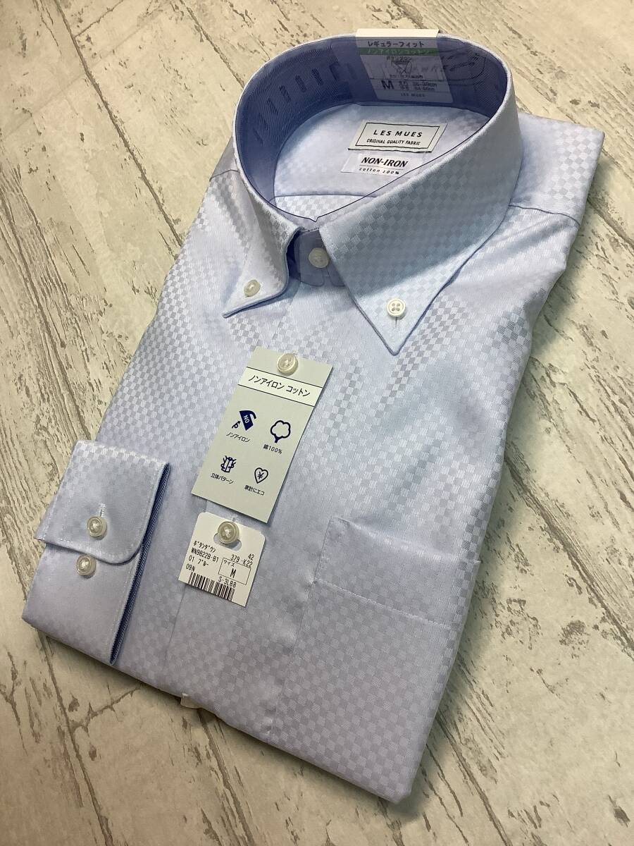 新品 39-86長袖Mサイズ ボタンダウン★ドレスシャツ ノンアイロン綿100%☆ブルー系 チェック柄