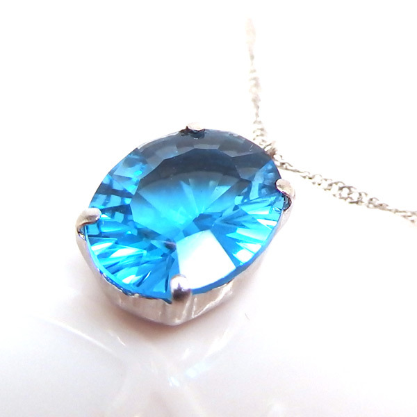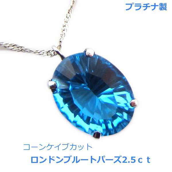 【送料無料】プラチナ製コーンケイブカットロンドンブルートパーズ2.5ctネックレス■4333