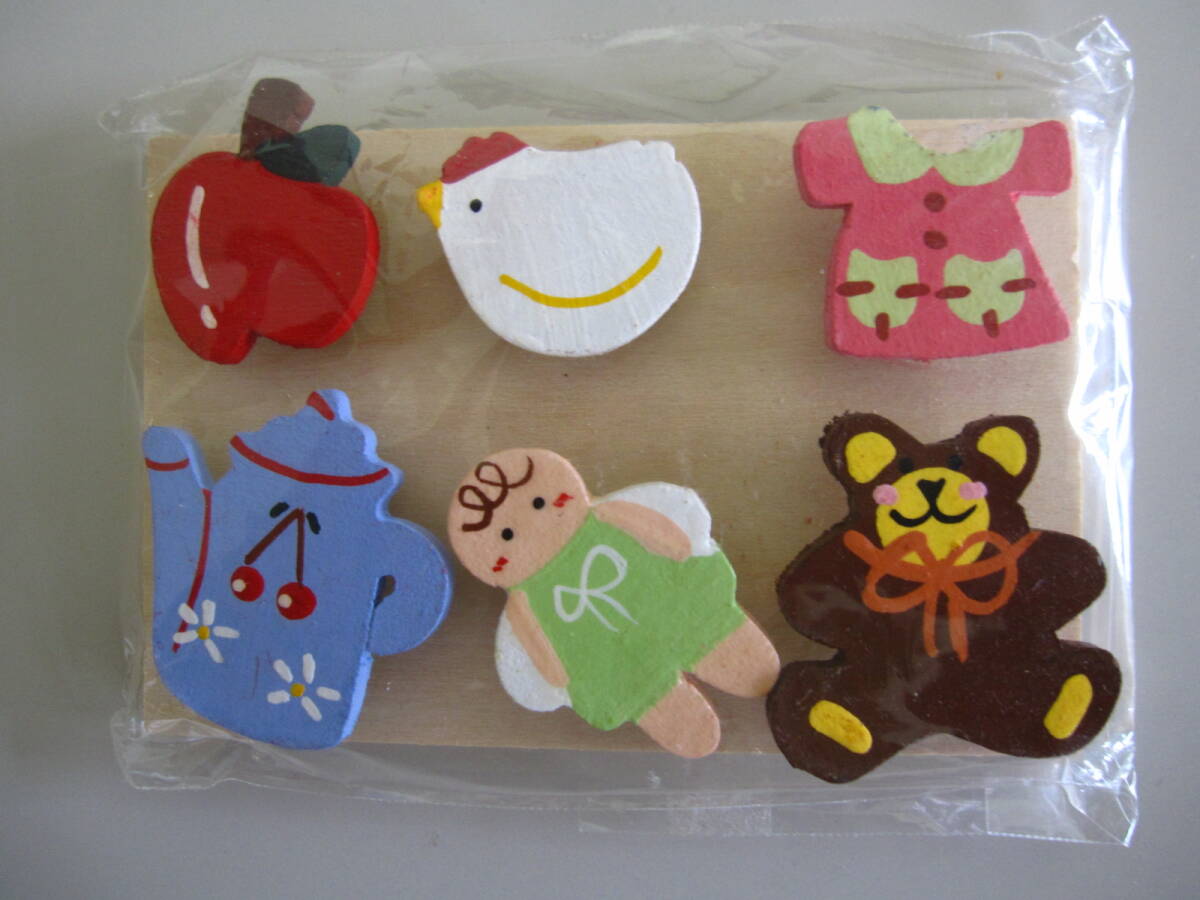 ・商品名 | ★未使用品★ 木製押しピン ハンドメイド テディベア・りんご・にわとり・ワンピース・ポット 妖精 全6種 |