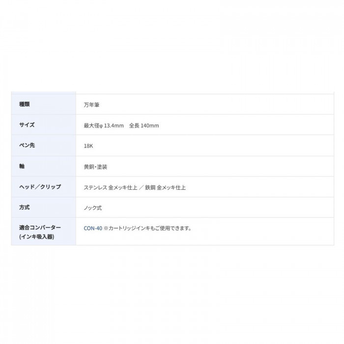ノック式ボールペンのようにワンノックですばやく書くことができる万年筆です。ペン先の収納時には、気密性の高いシャッター機構によりインキの漏れや乾燥を防ぎます。独創的な発想と優れた機能性をもつ1本です。 |