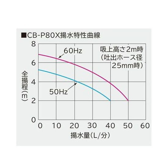 | 周波数 | 全揚程(m) | 吸上高さ(m) | 揚水量(L/分) |