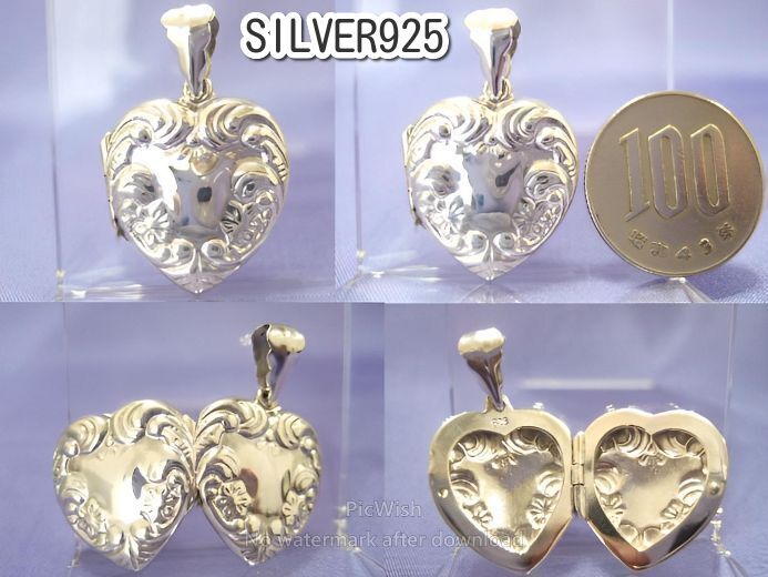 商品名 | 横浜最新 シルバー925 銀ロケットペンダントハート♪魅惑の鏡面 波花模様 4.2g メンズレディース |