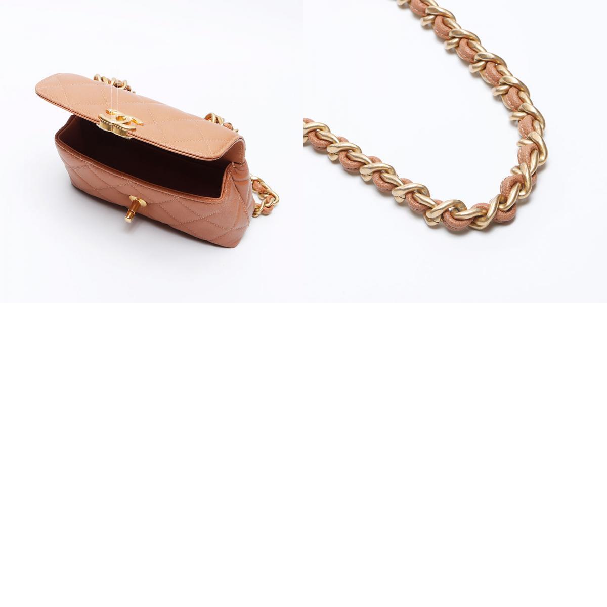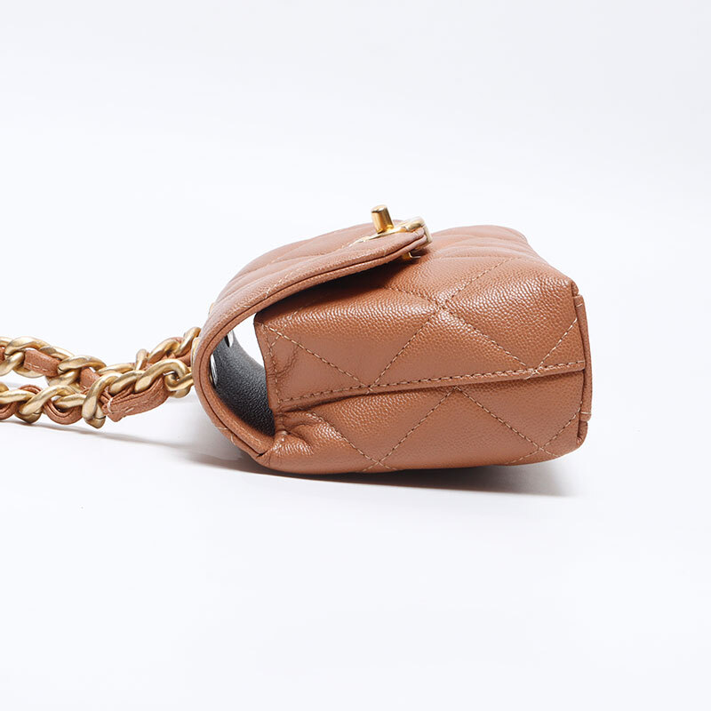 極美品 CHANEL キャビアスキン チェーン ココマーク ミニ ショルダーバッグ ブラウン