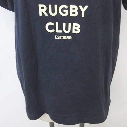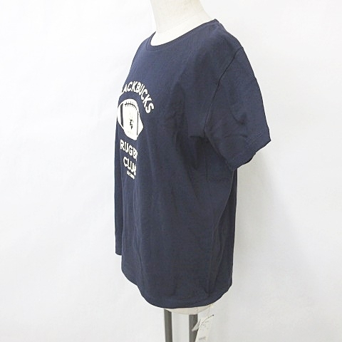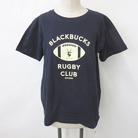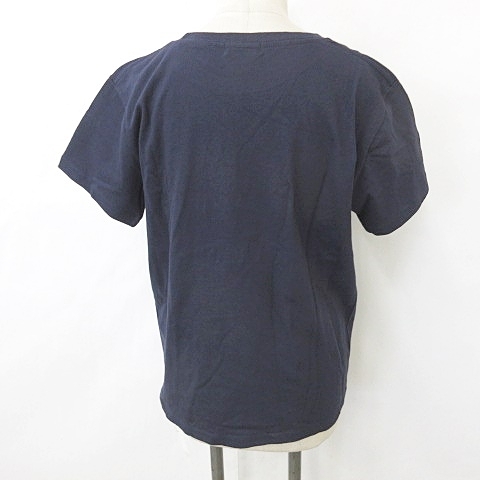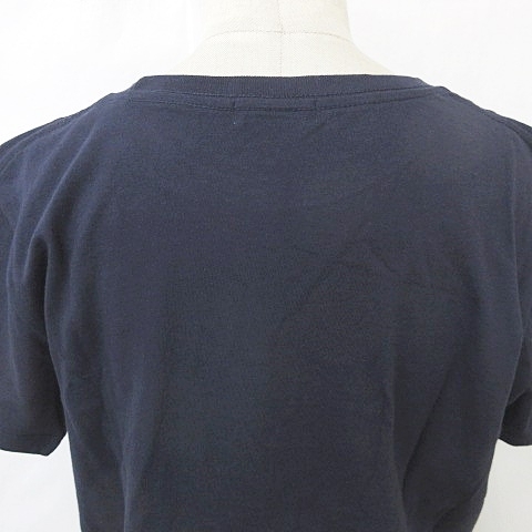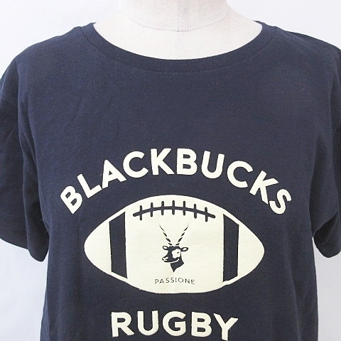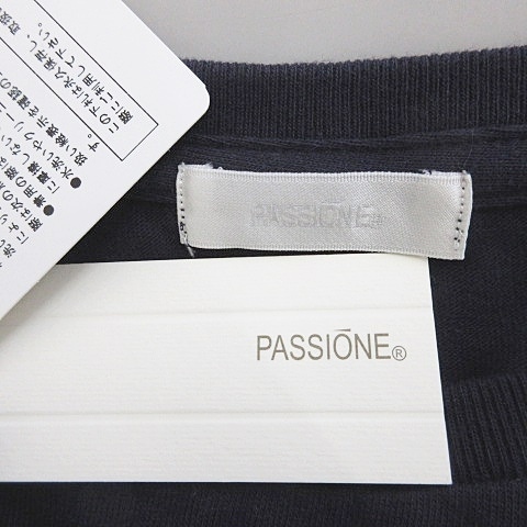 未使用品 パシオーネ PASSIONE Tシャツ カットソー 半袖 丸首 プリント 文字 綿 紺 ネイビー 38 レディース