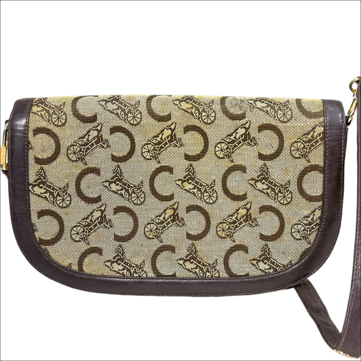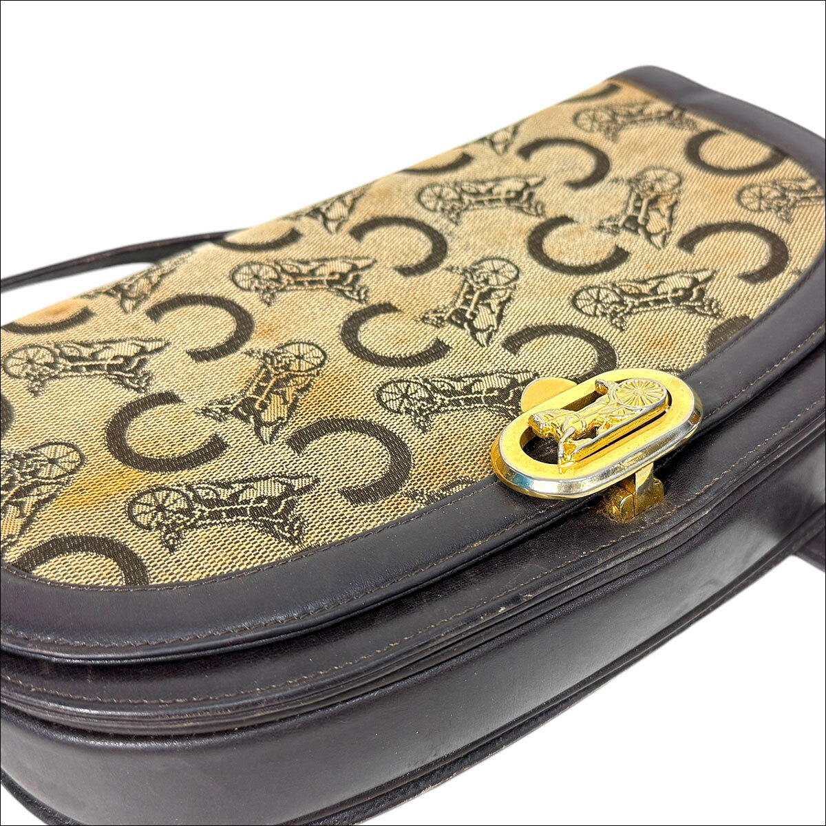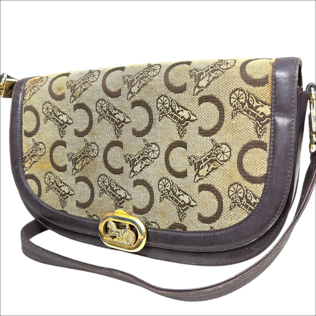 J6353 オールドセリーヌ セリーヌ ゴールド金具 馬車柄 キャンバス×レザー ショルダーバッグ ブラウン CELINE