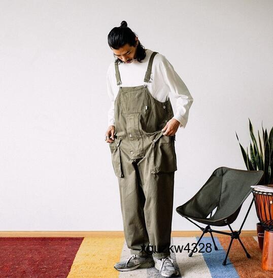 メンズオーバーオール パンツ メンズ ワークパンツ ゆったりパンツ サルエルパンツ ミリタリーパンツ カーゴパンツ ダークグリーン S~3XL