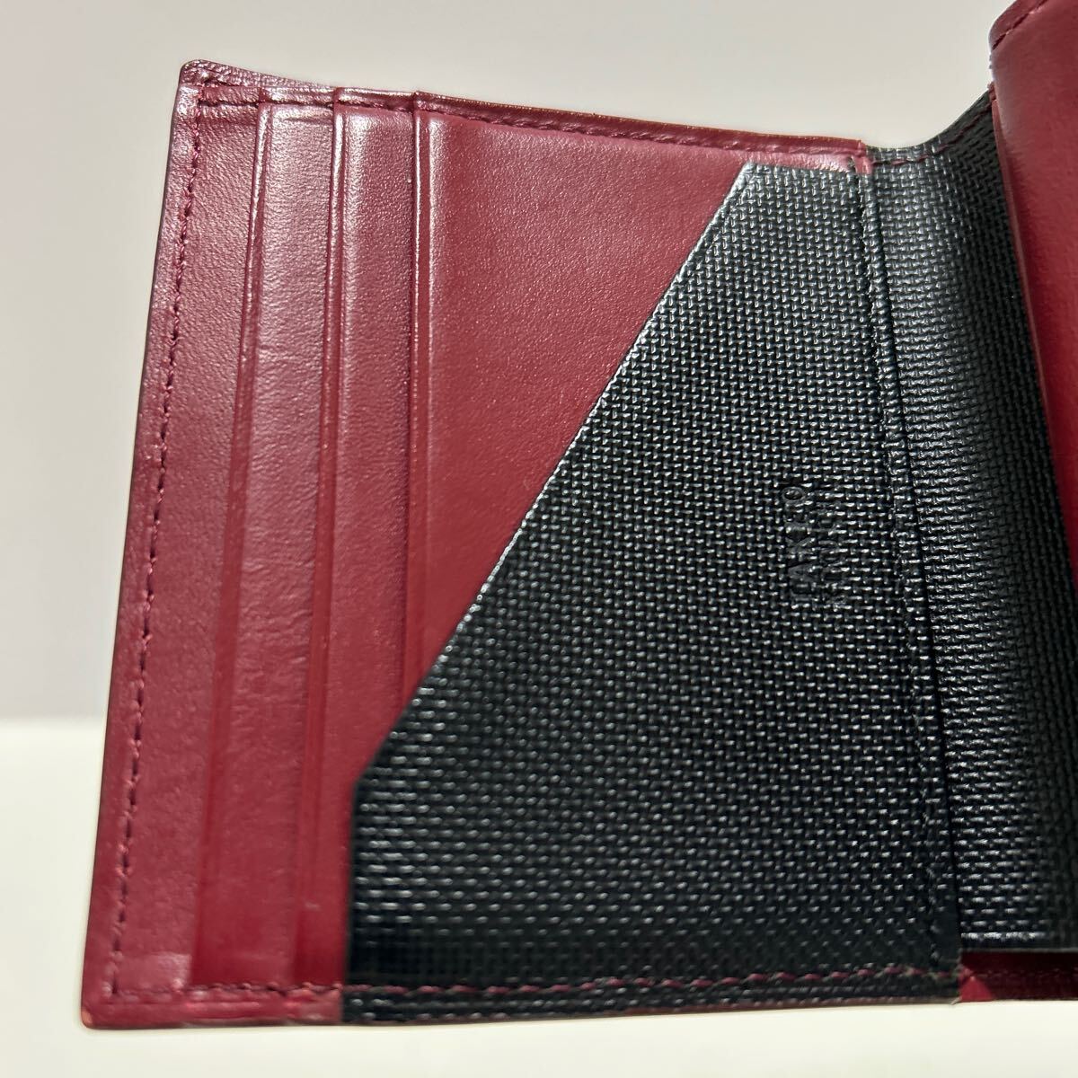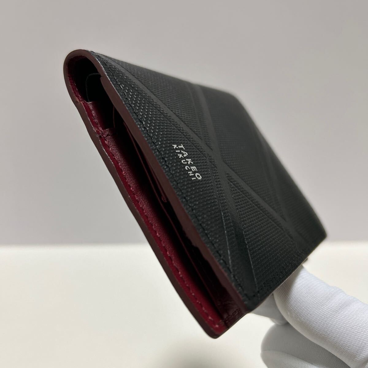 ☆美品☆ ◆TAKEO KIKUCHI タケオキクチ コンパクト 折り財布 ブラック×ボルドー◆ レザー 小銭入れ有 札入れ×2 【送料無料】0503
