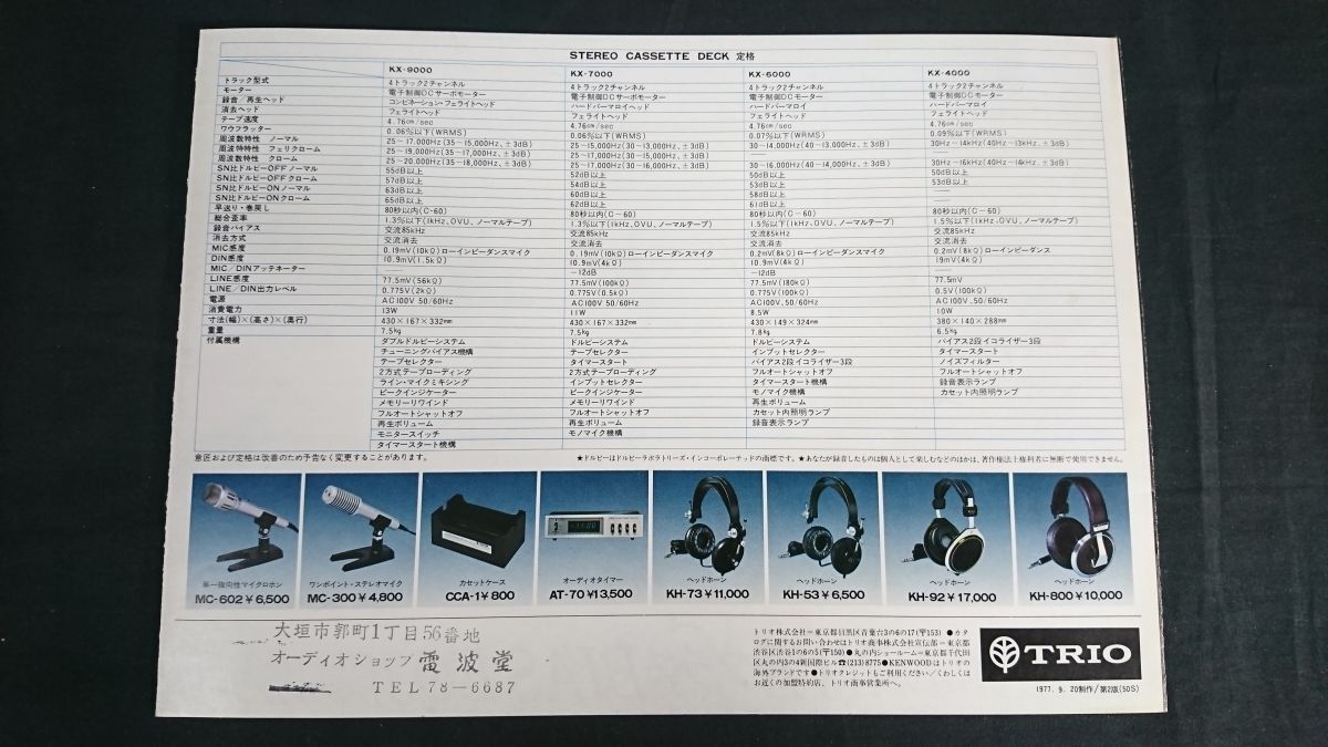| 【昭和レトロ】『TRIO(トリオ)STEREO CASSETTE DECK(ステレオ カセットデッキ)KX-9000/KX-7000/KX-6000/KX-4000 カタログ 1977年9月』トリオ株式会社 | |