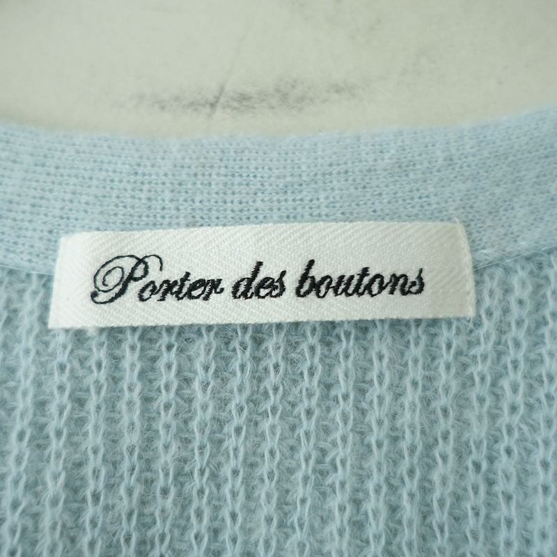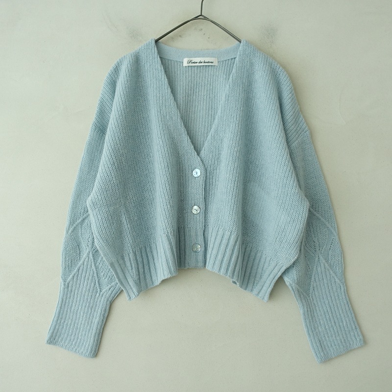 | 2024-2025年コレクションporter des boutonsのシャギーニットカーディガンです。カラーはサックスで、ローゲージの起毛ニット素材で仕立てられており、袖は柄編みに切替られております。ショート丈のシルエットになっており、定価(メーカー希望小売価格)25,300円 税込みの商品です。 |