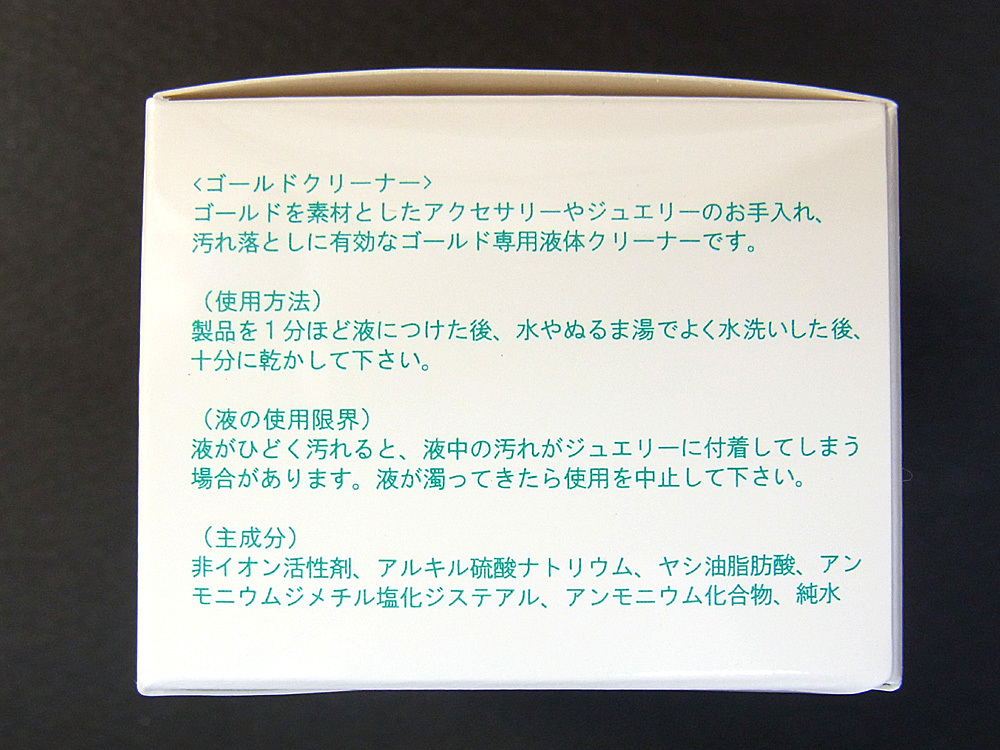ゴールドを素材としたアクセサリーやジュエリーのお手入れ汚れ落としに有効なゴールド専用液体クリーナーです。