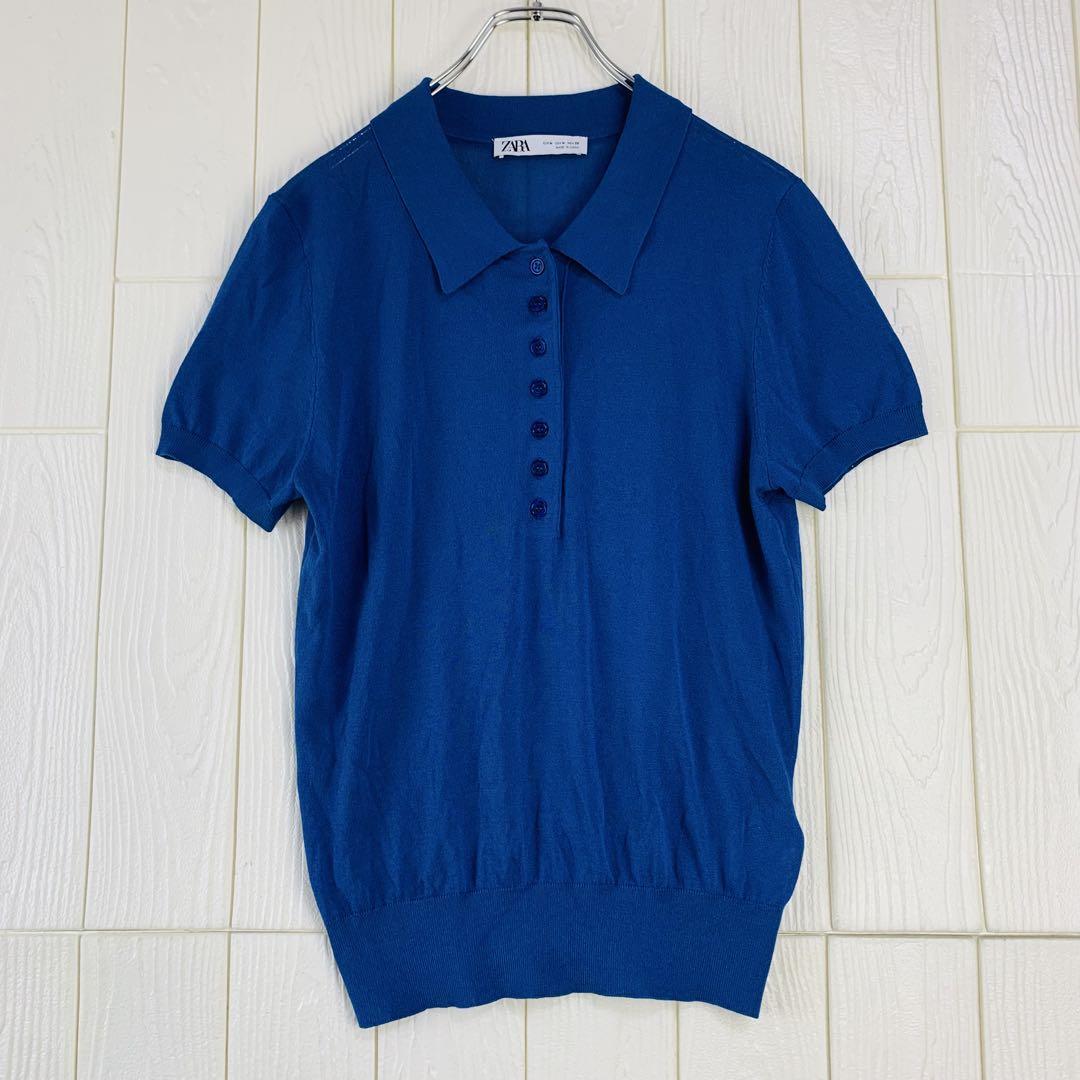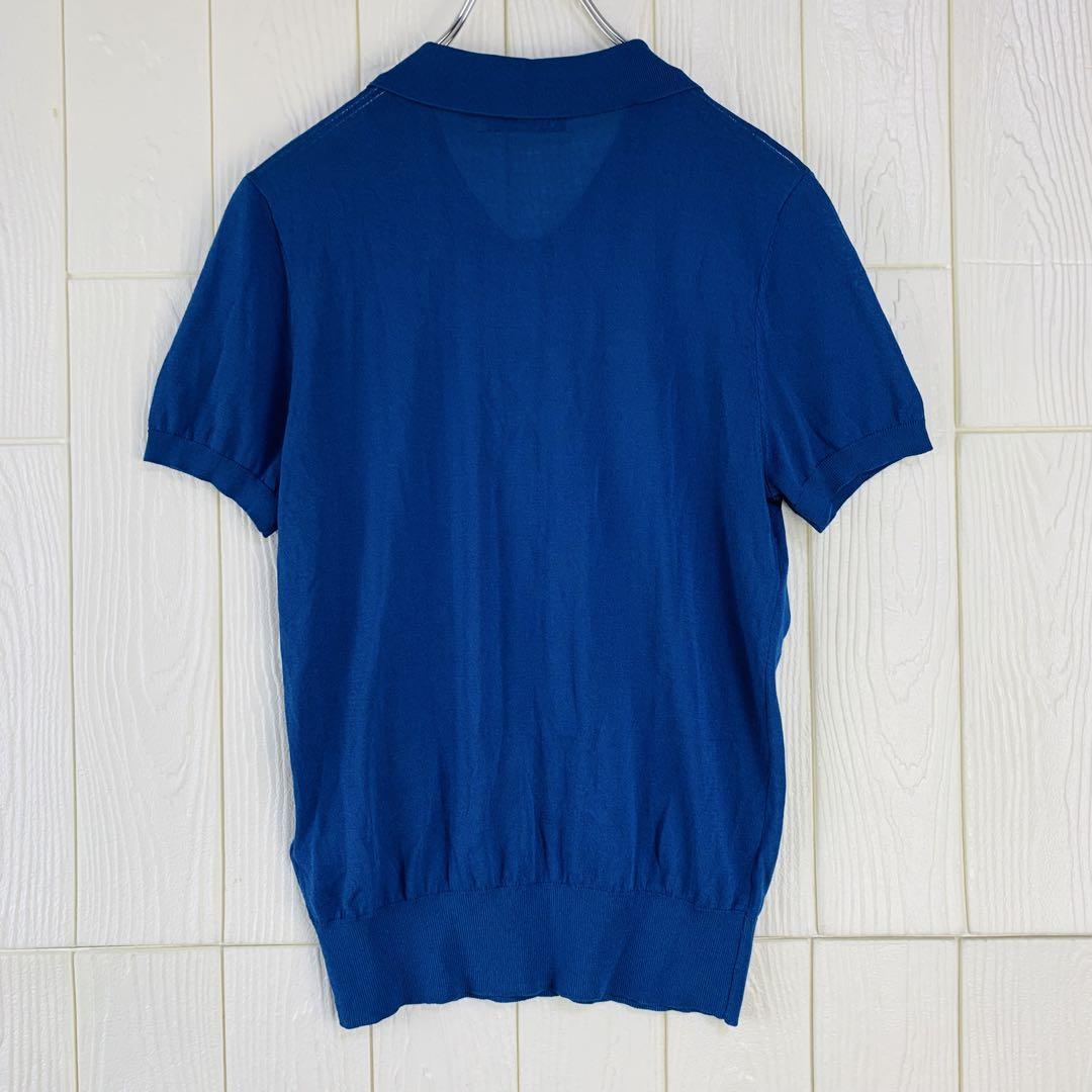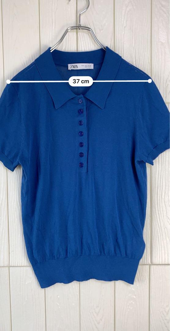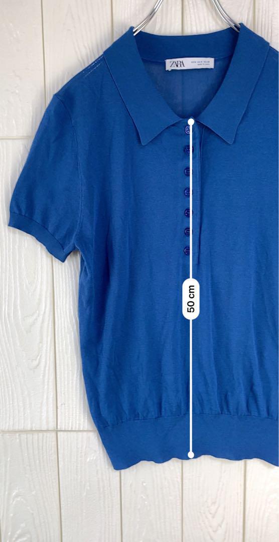 青色の半袖ポロシャツ、肩幅37cm、着丈50cm。