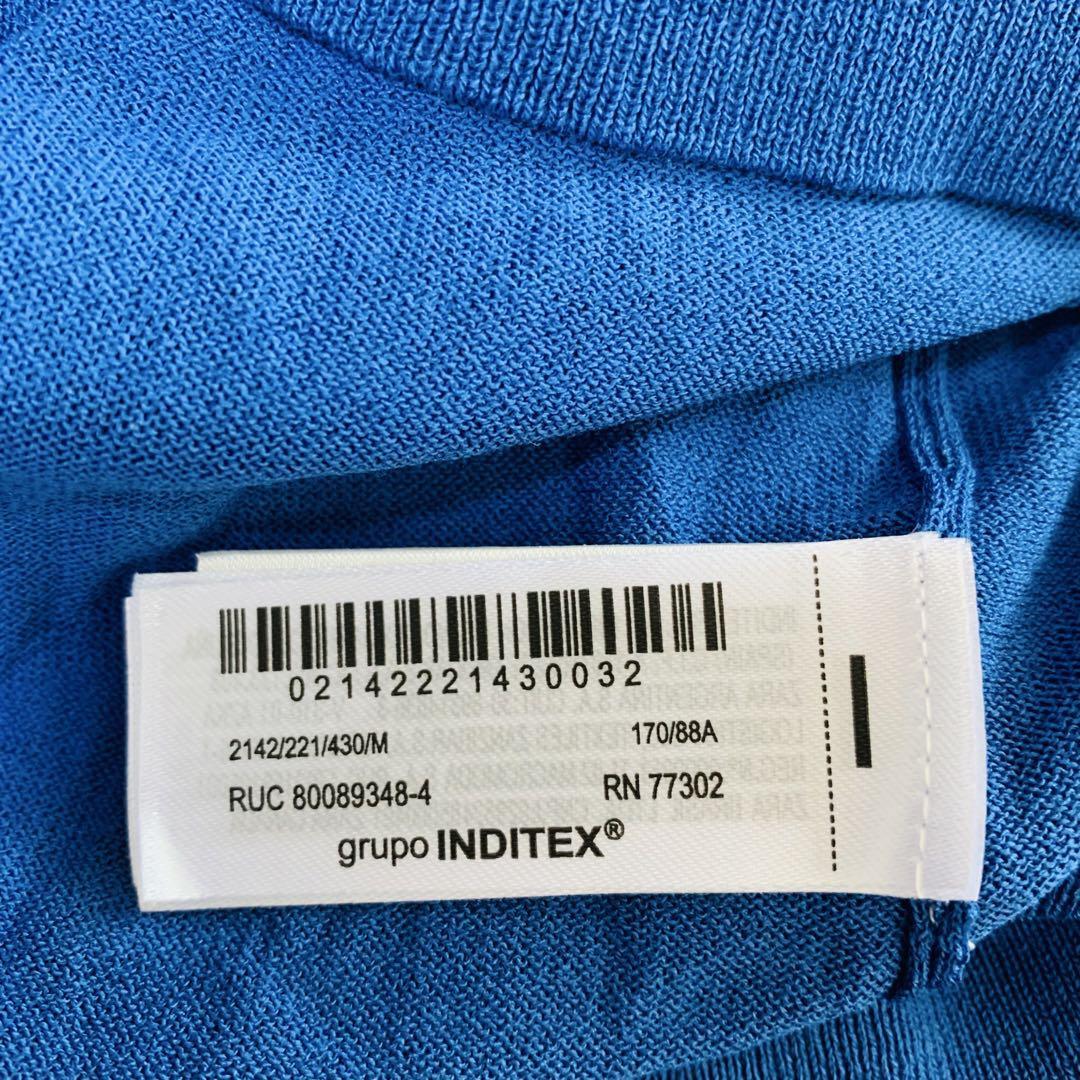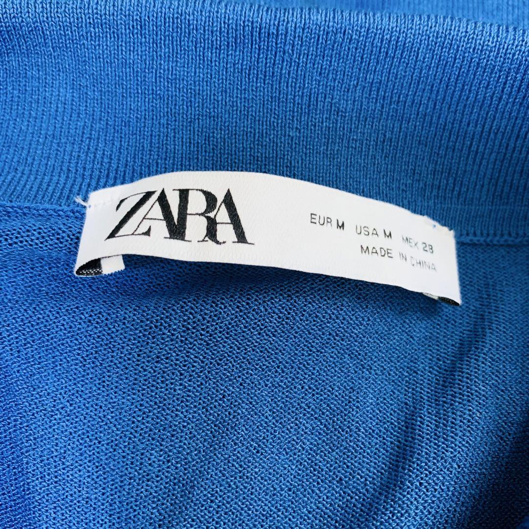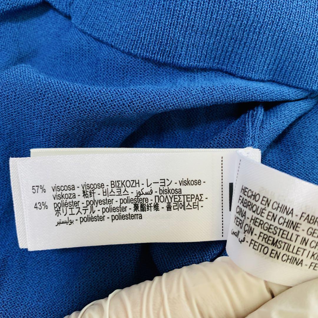青色の半袖ポロシャツ、肩幅37cm、着丈50cm。
