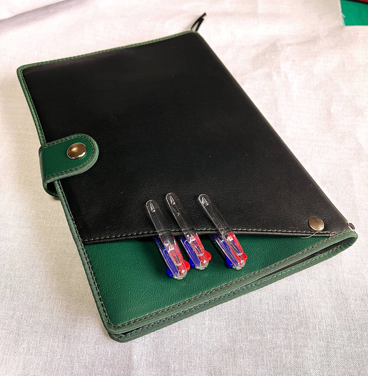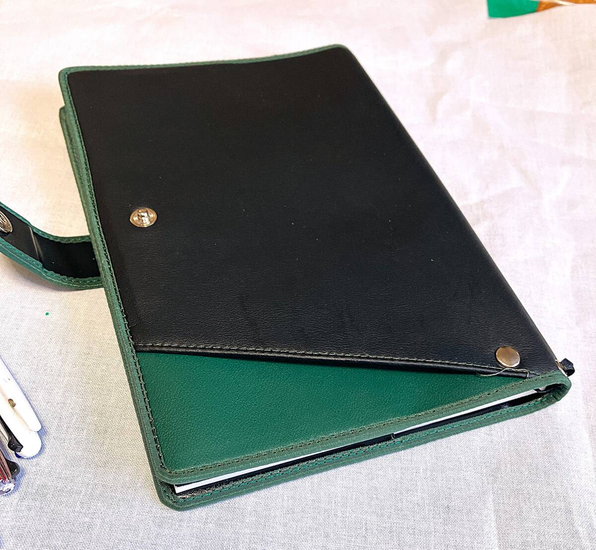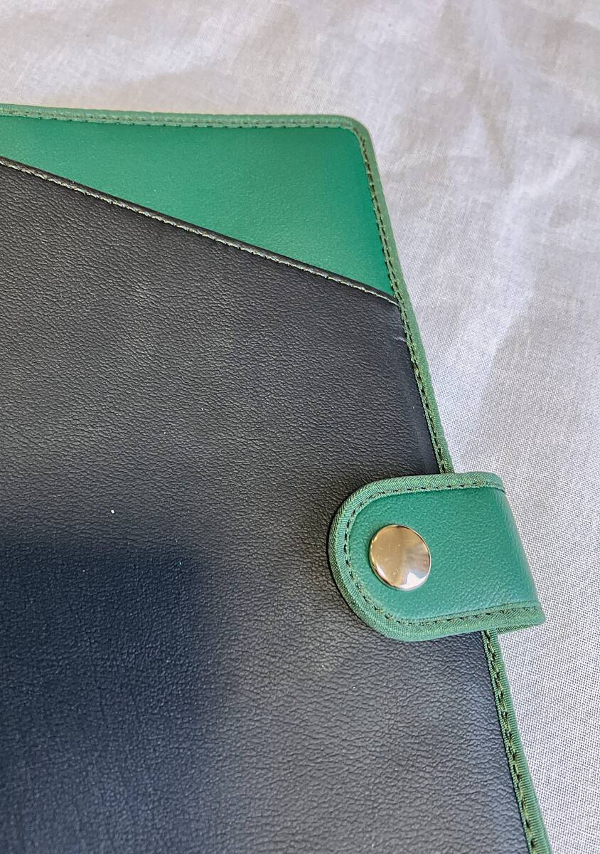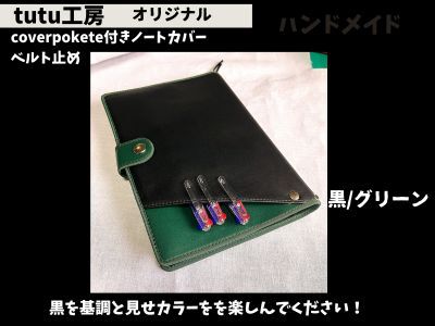 tutu工房【coverpoket付き A5サイズカバー】ベルト止め■黒/グリーン