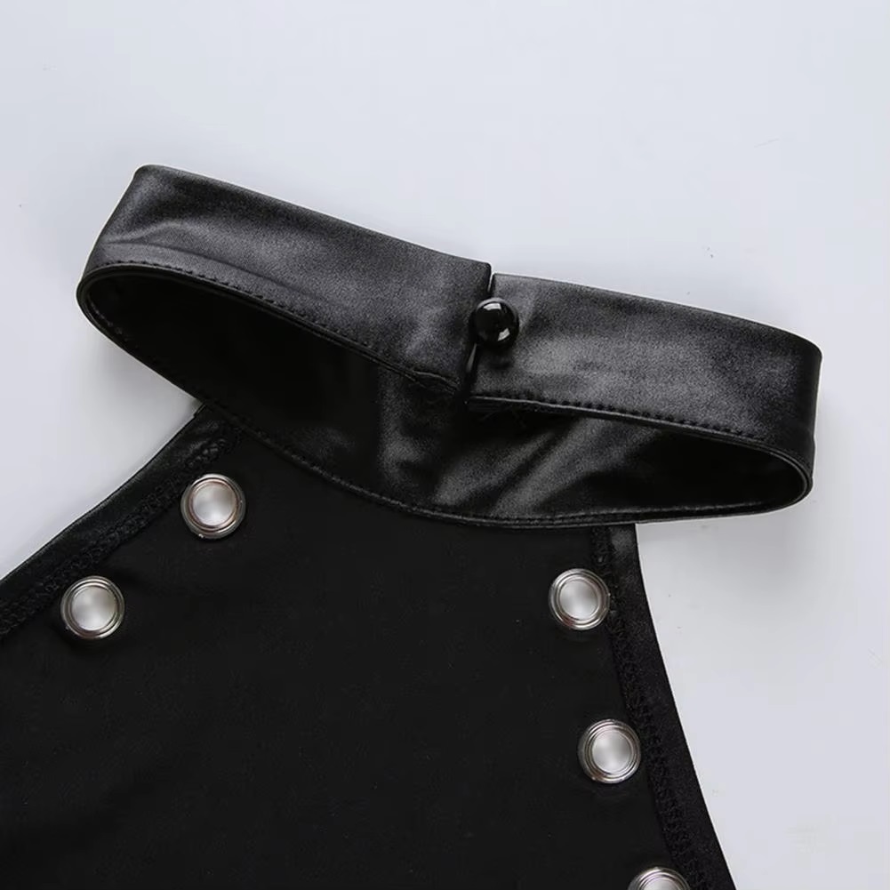 あみこみ ボディースーツ ワンピース スタイリッシュ クロッチ ボタン ブラック カラー スリム フィット コスプレ ビキニ V881