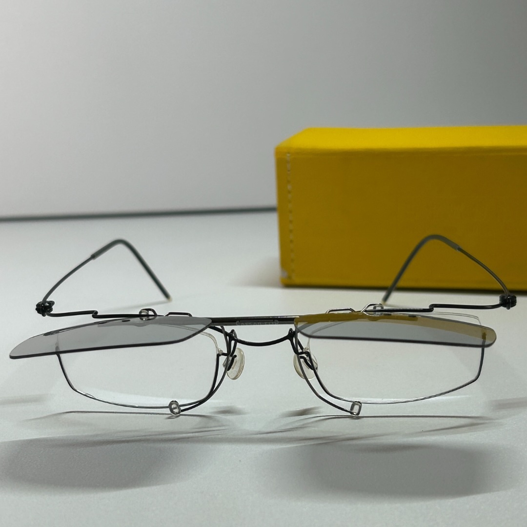 眼鏡の聖地・福井県鯖江市で製造された、 CONCEPT「Y」(コンセプトY)と CAESAR FLIP(シーザーフリップ)付きのサングラスです。 ネジを一切使わない独自構造 驚くほど軽量で、長時間の着用でも快適 高品質なチタン製フレーム、日本製ハンドメイド フロントには跳ね上げ式のカラーレンズを搭載し、 日差しの強い場所と屋内での切り替えがスムーズに行える機能性も魅力です。 【主な仕様】 ・ブランド:CONCEPT「Y」 × CAESAR FLIP ・製造国:日本(福井県鯖江市) ・フレーム素材:チタン ・レンズ:グレーカラー跳ね上げ式(ダミーレンズ装着) ・カラー:ブラック系 ・付属品:メガネケース(※福井市の「田中眼鏡本舗」のものです) 【状態】 ・中古品となりますが、フレームの状態は良好で、目立つダメージは見られません。 ・ダミーレンズに傷あり。視界に大きな影響はありませんが、気になる方は交換をおすすめいたします。 ・跳ね上げ機構の動作も良好です。